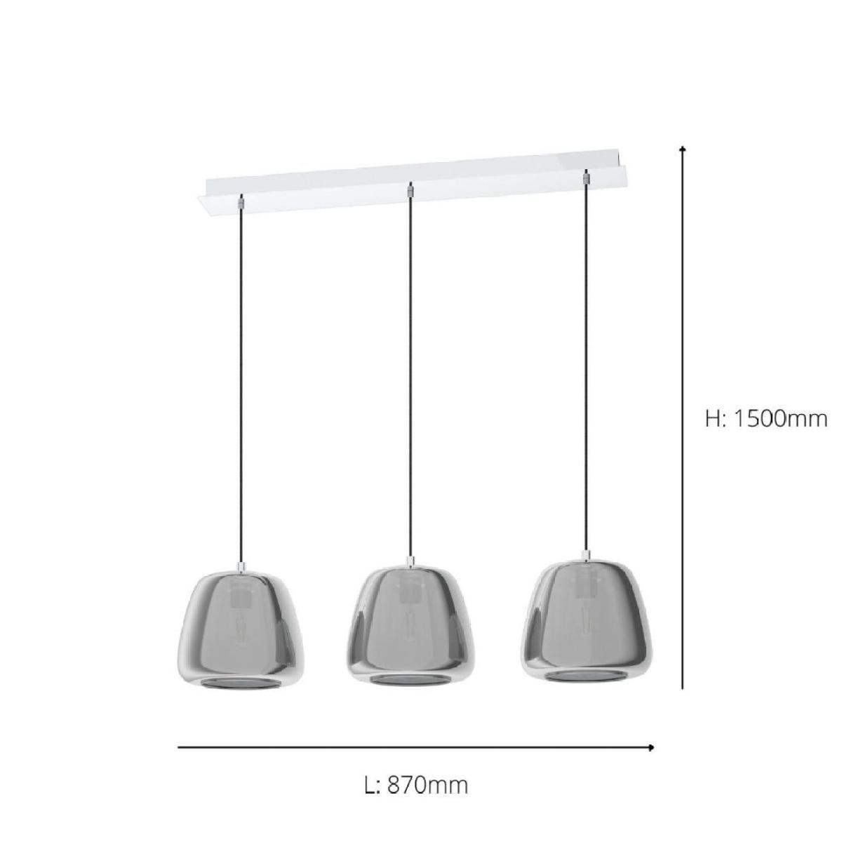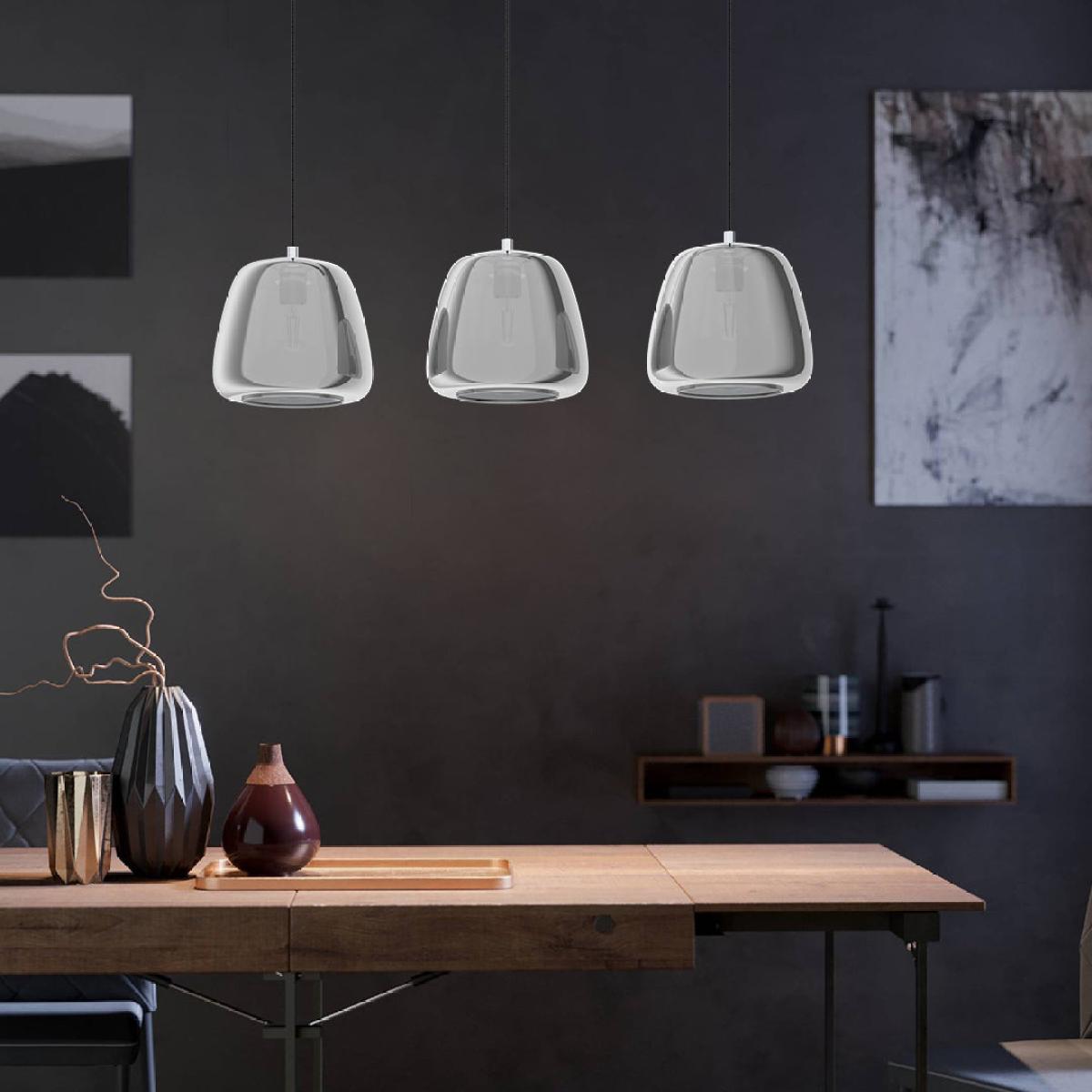 Contemporary pendant ceiling bar featuring a smoked glass finish. Modernise your kitchen islands or dining room tables with the stunning Albarino 3 light ceiling bar. Elegant smoked glass dome shades are suspended by black flex from a polished chrome ceiling bar, creating a versatile and minimal design. The finishing touch to your kitchens and living spaces, this contemporary ceiling light is set to wow your guests. Create a soft, warming glow with our LED Vintage light bulbs. Contemporary pendant ceiling bar featuring a smoked glass finish. Modernise your kitchen islands or dining room tables with the stunning Albarino 3 light ceiling bar. Elegant smoked glass dome shades are suspended by black flex from a polished chrome ceiling bar, creating a versatile and minimal design. The finishing touch to your kitchens and living spaces, this contemporary ceiling light is set to wow your guests. Create a soft, warming glow with our LED Vintage light bulbs.