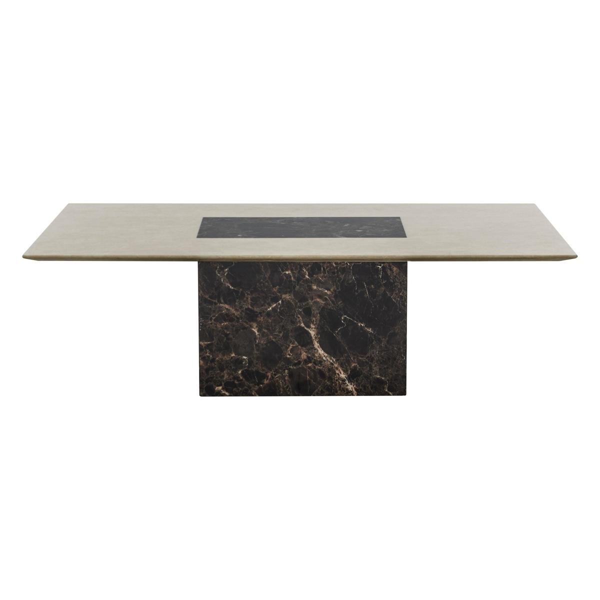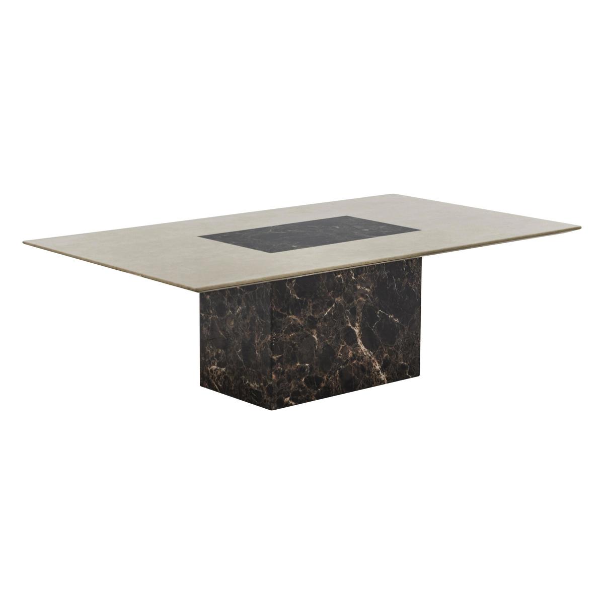 The essence of luxurious style, the Albarino collection includes a beautifully-curated selection of tables – dining table, lamp table and coffee table – with a simply stunning high-gloss two-tone marble look, carefully crafted for patterning perfection. Set on pedestal bases, tables have a stylish contemporary feel that’s complemented by the coordinating high-gloss marble-topped sideboard and faux leather cantilever-base dining chairs. Albarino is a Furniture Village exclusive collection. Designer style meets practicality in the striking Albarino pedestal base coffee table. Large in scale and dramatic in style, this stunning coffee table is made of white quartz marble topped with a marble-effect finish that ensures a more precise rendition of this gorgeous natural material. The pedestal base and inlaid table top section feature emperador marble’s distinctive dark brown and gold swirling pattern, while the table top surround has a cool, classic white marble finish. A hand-poured high-gloss lacquer beautifully highlights the luxe two-tone marbled finish. The perfect centrepiece for any stylish contemporary living space, the Albarino coffee table is part of the Albarino collection, exclusively available at Furniture Village. You'll find the same stylish two-tone marbled look in the Albarino dining table and the Albarino lamp table. Top tip:. To clean, wipe any spills with a damp cloth and then dry using a soft duster. Avoid using abrasive cleaners as these may scratch the surface.