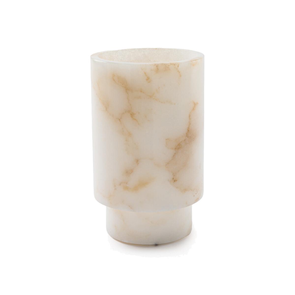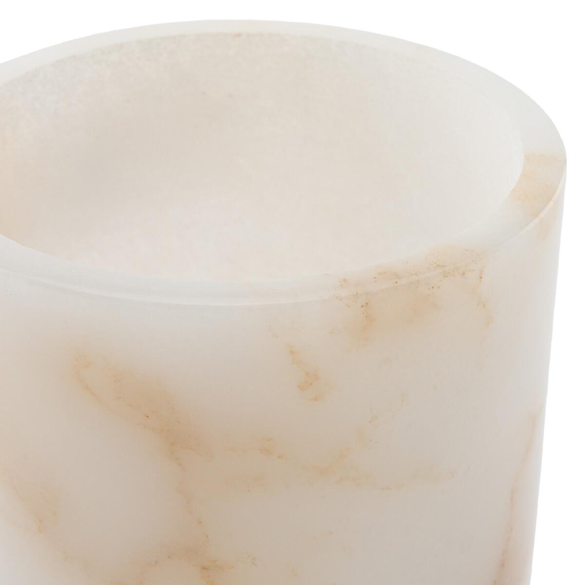 I love this alabaster candle holder for its understated elegance and versatile style. Its neutral tones and smooth finish make it an ideal fit for both contemporary and classic interiors, adding warmth without overpowering the space. It's particularly effective when paired with other natural materials like wood or linen, or used on a mantelpiece, side table, or bathroom shelf for a subtle touch of luxury. For styling tips, try grouping a few at varying heights or mixing with metallic accents for contrast. Its clean design also makes it suitable for minimalist schemes or more layered looks-just keep the surrounding décor simple to let the material shine.