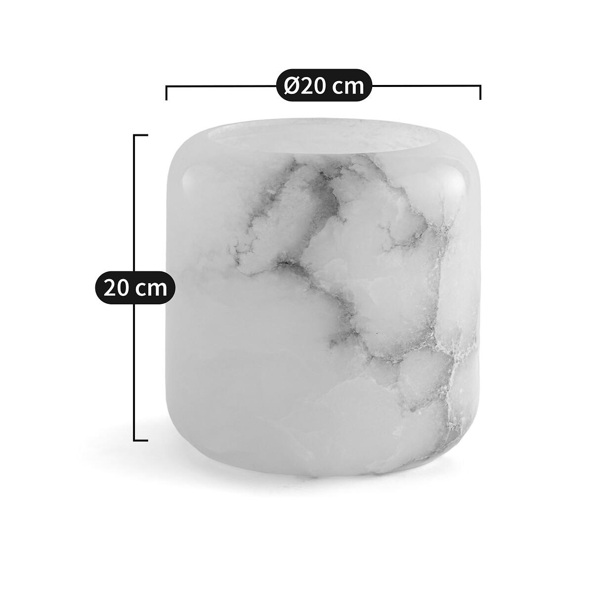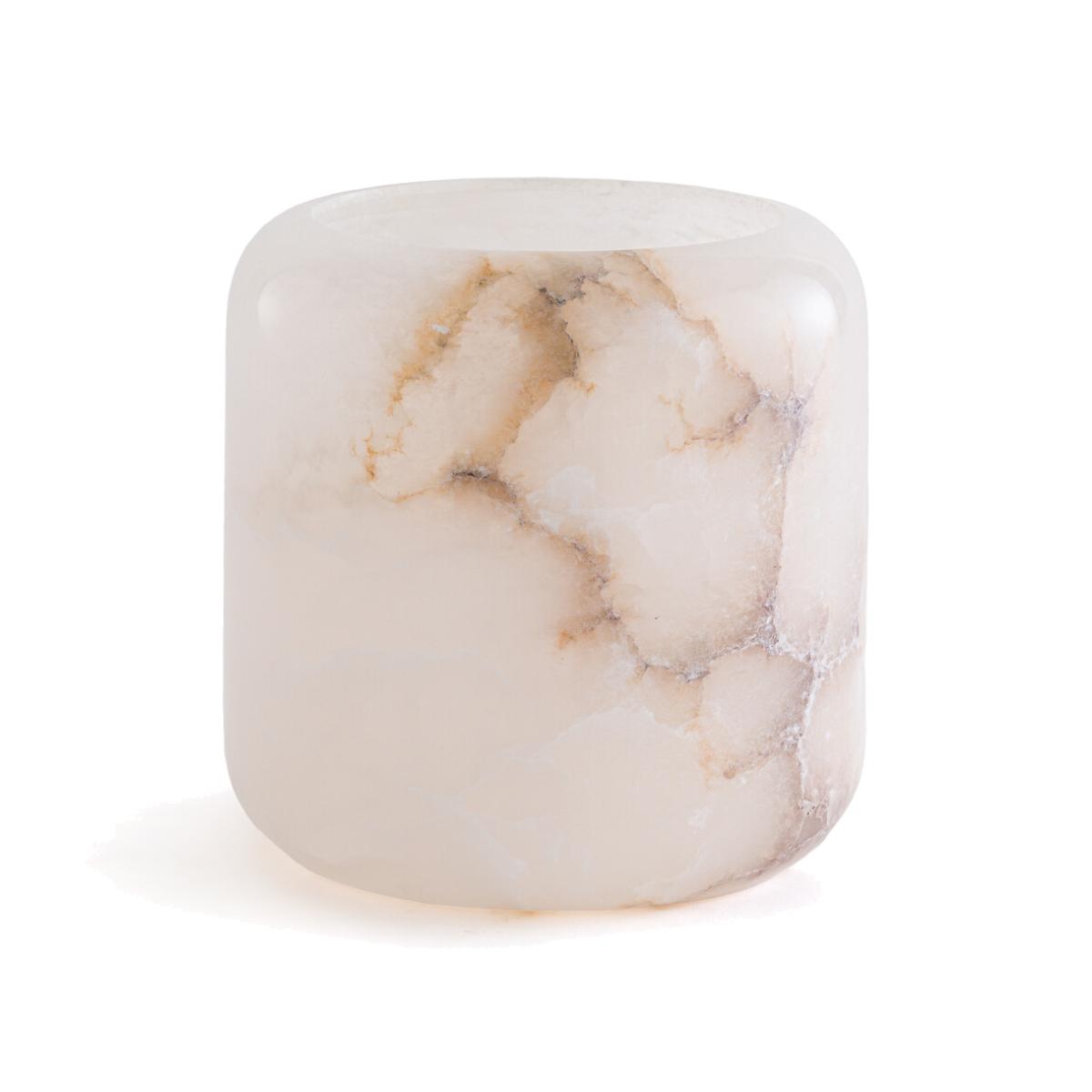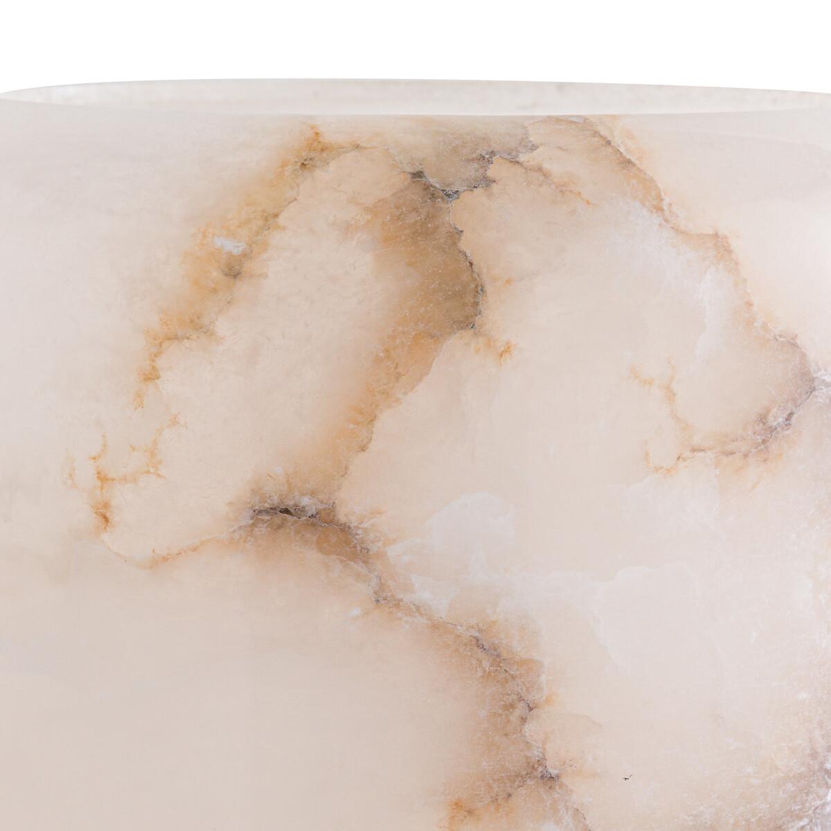 Carved from stone, this vase with its soft curves is a decorative element that is as simple as it is sophisticated.. Used since ancient times, alabaster has a particular veining that makes each piece unique. Its opalescence lets the light shine through: the appearance of this alabaster vase varies depending on the lighting in your living space. Alive and timeless. Product Details • In Alabaster • Each piece is unique, the colour may vary depending on the stone used • Decorative use only, cannot contain water. Dimensions • Diameter: 20cm • Height: 20cm. Dimensions and weight of parcel • 1 parcel • L27.5 x H27.5 x D27.5cm