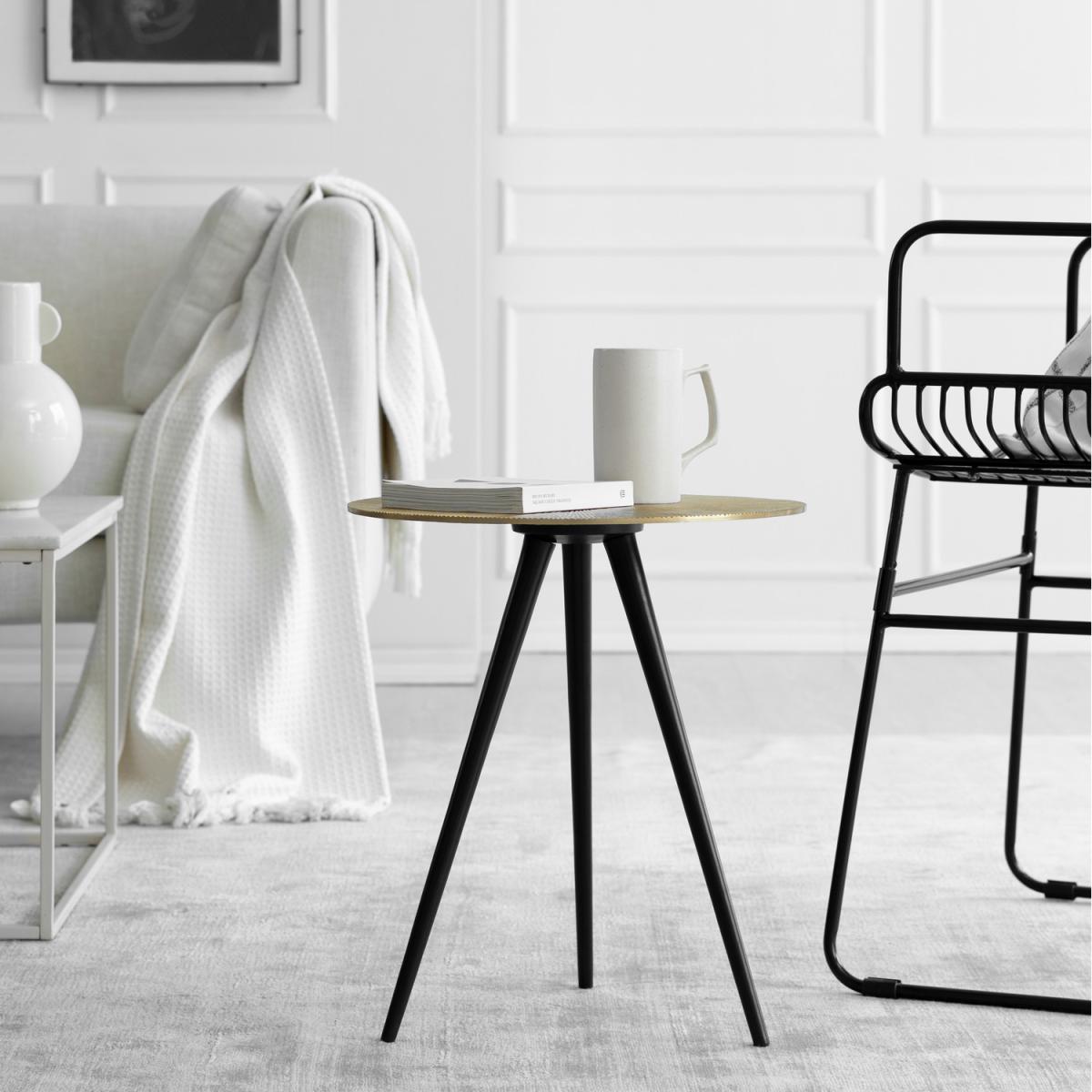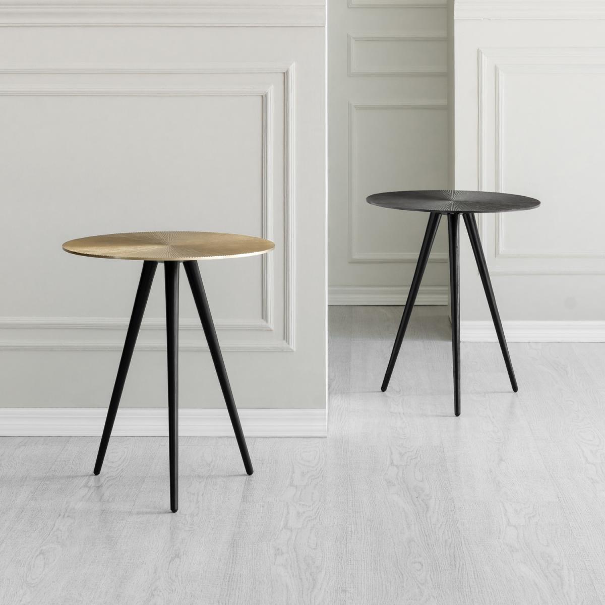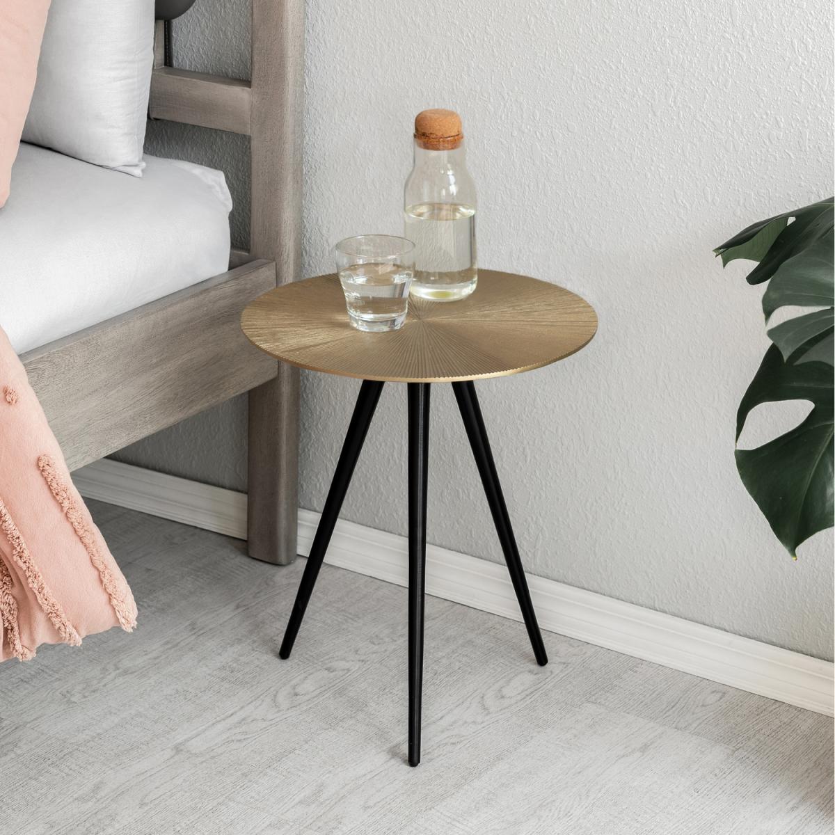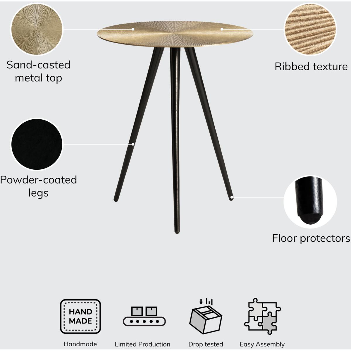 Designer vibes Welcome with a metal top that is hand cast by artisans this side table is almost too good to be a sidekick to your couch. The ribbed texture steals the show but the mid-century modern tapered legs keep it grounded literally. They are strong stylish and powder coated. Its so interesting to look at your guests might just want to steal the look From pots lamps and half read magazines to opulence keeps everything close at hand. Given its hand casted nature no two tabletops are alike each exhibits unique characteristics making yours almost exclusive