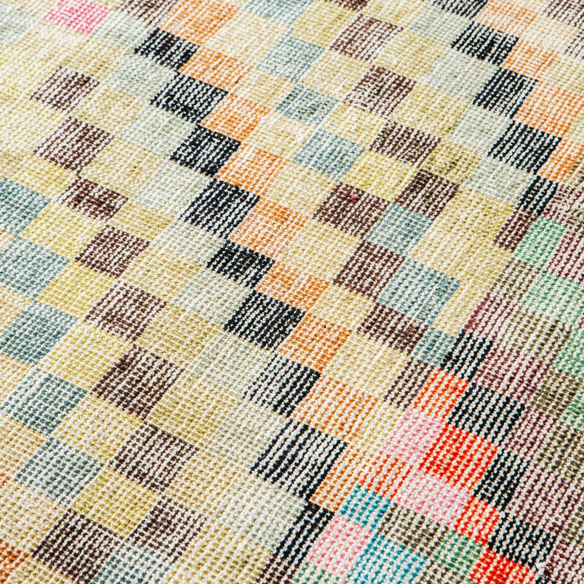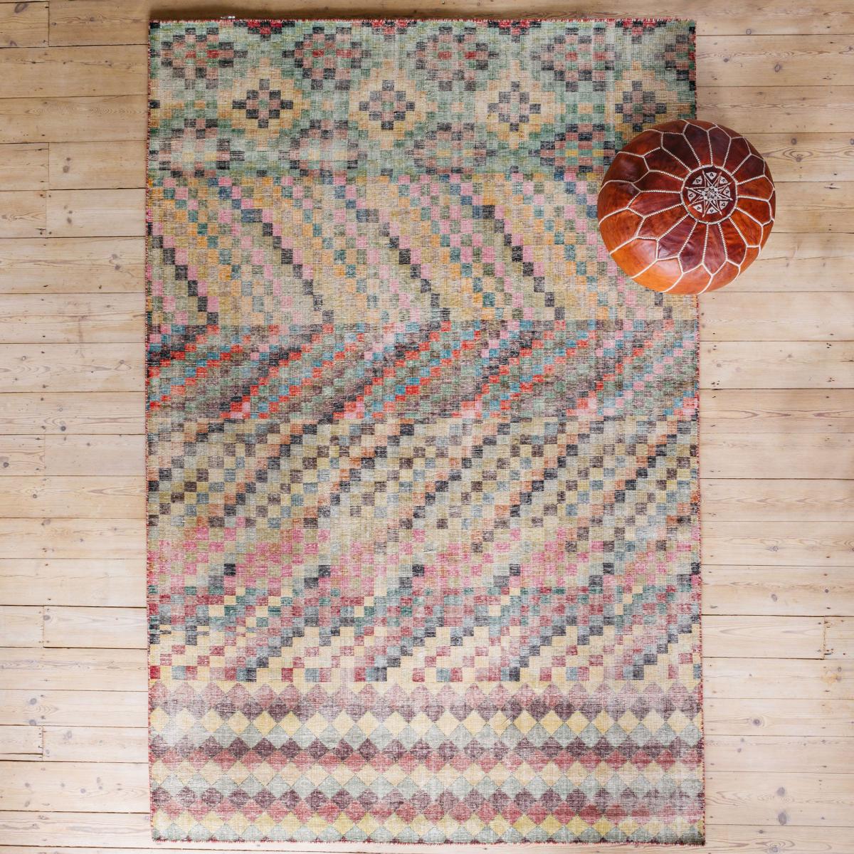 Woven from a high-quality blend of wool and cotton, our Albers rug beautifully combines an array of colours that weave in and out of its unique pattern. Hand-knotted by our expert team of weavers in North India, each rug follows a skilled process incorporating a distressing technique that produces a beautiful artisan piece.
