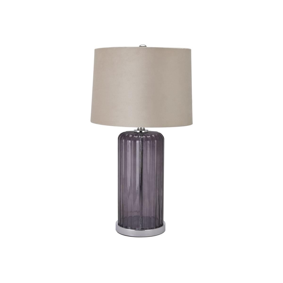 This is the Alberta Metallic Glass Lamp With Velvet Shade. A stylish statement lamp with a uniquely shaped handcrafted reeded ribbed glass base. This lamp comes complete with neutral velvet shade and in-line switch and will tone beautifully with a variety of decor schemes.