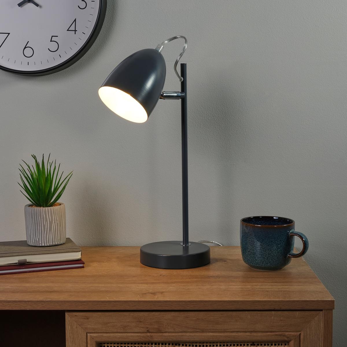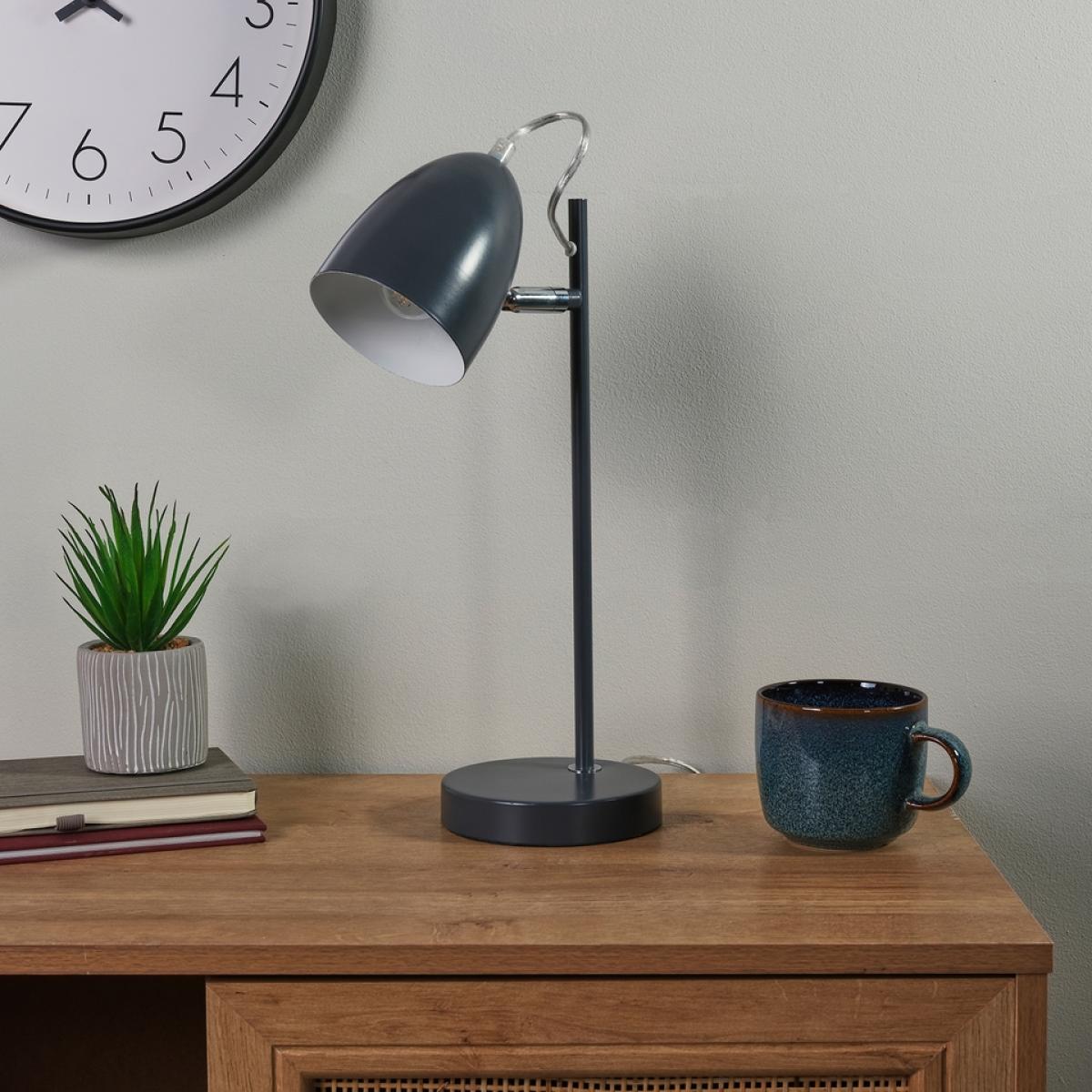 Illuminate your workspace in style with this sleek and modern desk lamp that features a clean, grey finish that will complement any décor. The adjustable head allows you to direct the light exactly where you need it and the compact base won't take up valuable desk space, while the sturdy design ensures the lamp stays exactly where you put it.