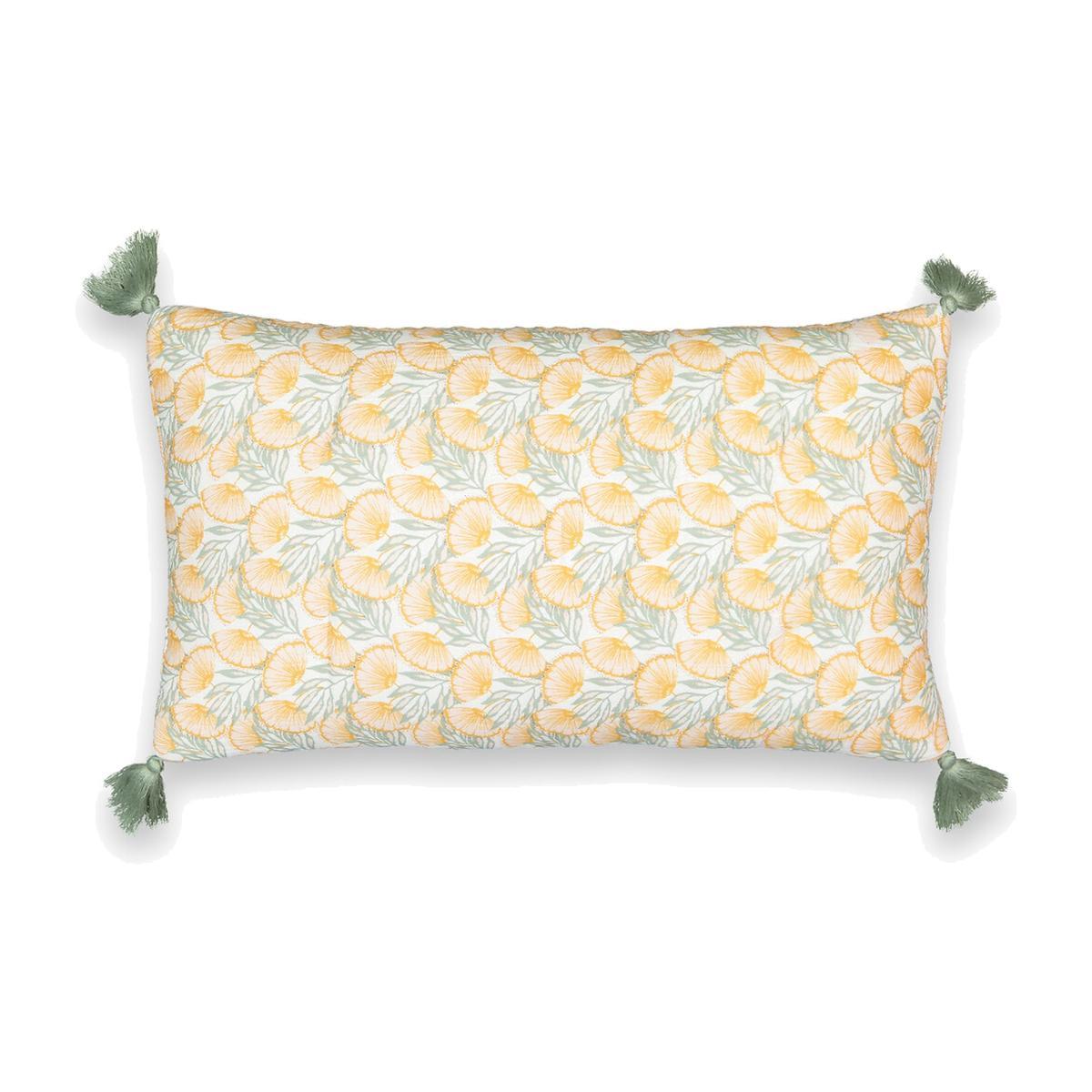Bring a delicate and decorative note to your decor with this charming and soft cushion cover. 4 small green pompoms highlight the floral pattern with the fresh look of spring. Product Details. Cover in pure cotton gauze. Print on both sides. 100% polyester fill (120g/m²). Finished with green pom poms in 4 corners. Flap closure on the back. Washable at 40°CBrowse the Albizia collection online at La Redoute.. Care. Machine washable at 60° Size. 50 x 30cm (rectangular)Additional information:. This STANDARD 100 certified product by OEKO-TEX® - certificate no. CQ 1102/4 IFTH - follows a certified and controlled manufacturing process which is respectful of your skin. The STANDARD 100 by OEKO-TEX® is the first label that meets the needs of consumers in terms of human ecology. It guarantees the absence of harmful substances or those potentially presenting a risk to health.