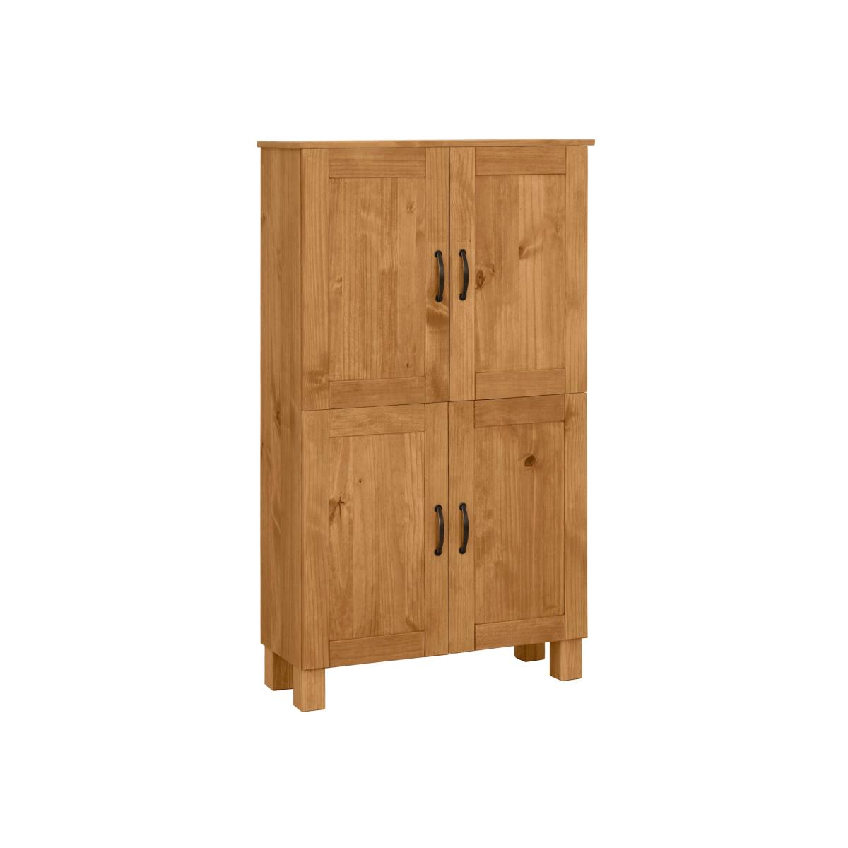 A stable and durable companion: This midi cabinet Rodby made of solid wood creates a natural living ambience and will give you long-lasting pleasure thanks to its high-quality design. The shelves can be used flexibly to tailor the cabinet to your exact needs. The modern metal handles are durable and underline the style. Your new piece of furniture can hold up to 20 kilograms.