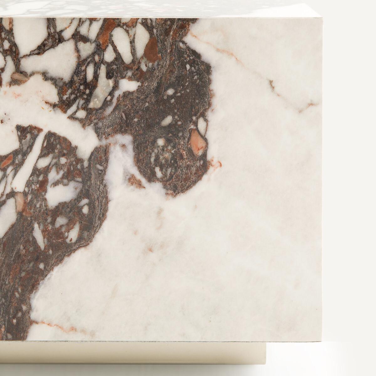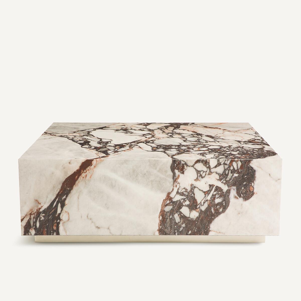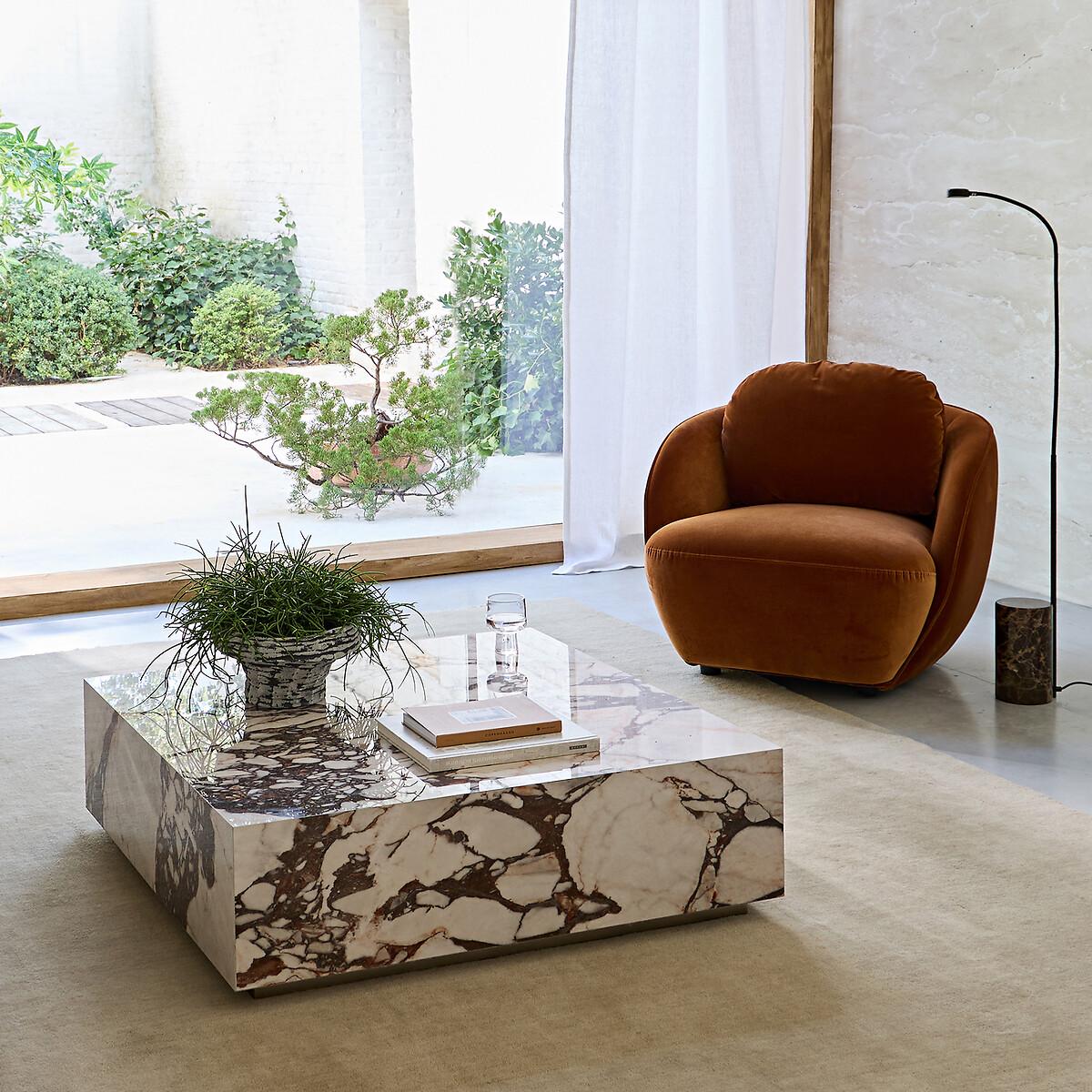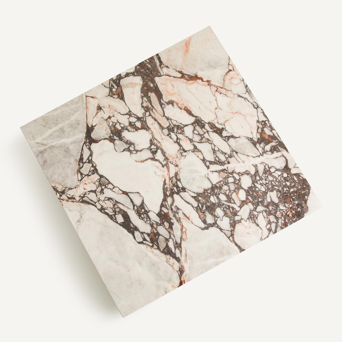 The beauty of a glossy-finish ceramic whose brick veining creates abstract prints in random shades. Each Alcana coffee table is unique. Robust and elegant, the coffee table is hollow and rests on a metal base with a matt nickel finish. An AMPM exclusive. Product Details • Structure in poplar plywood covered with marble-effect ceramic, brick colour grain • Ceramic veneer with glossy finish • Each piece is unique, the marbling can be more or less marked and the colours varied. • Iron base with matt nickel finish. Care Advice Ceramic is naturally porous and sensitive to stains. To keep it in good condition, follow the maintenance advice below: • Avoid placing hot objects on the surface, use coasters and trivets. • Immediately wipe up any spilled liquid with a white cloth dipped in lukewarm water and wrung out. • Acid, anti-limescale or bleach-based products are not recommended. Dimensions • Width: 90cm • Height: 31cm • Depth: 90cm • Sold pre-assembled. • WOOD FROM SUSTAINABLY MANAGED FORESTS. FSC® certified wood comes from forests that are environmentally, socially and economically well managed. Dimensions and weight of parcel1 parcel • W97.5 x H36 x D97.5cm, 75.3kg