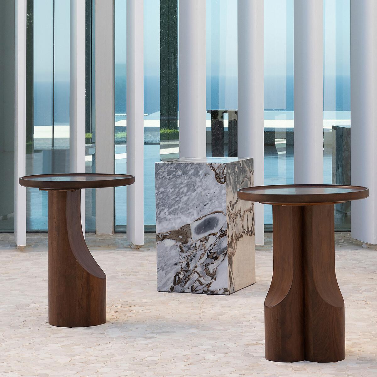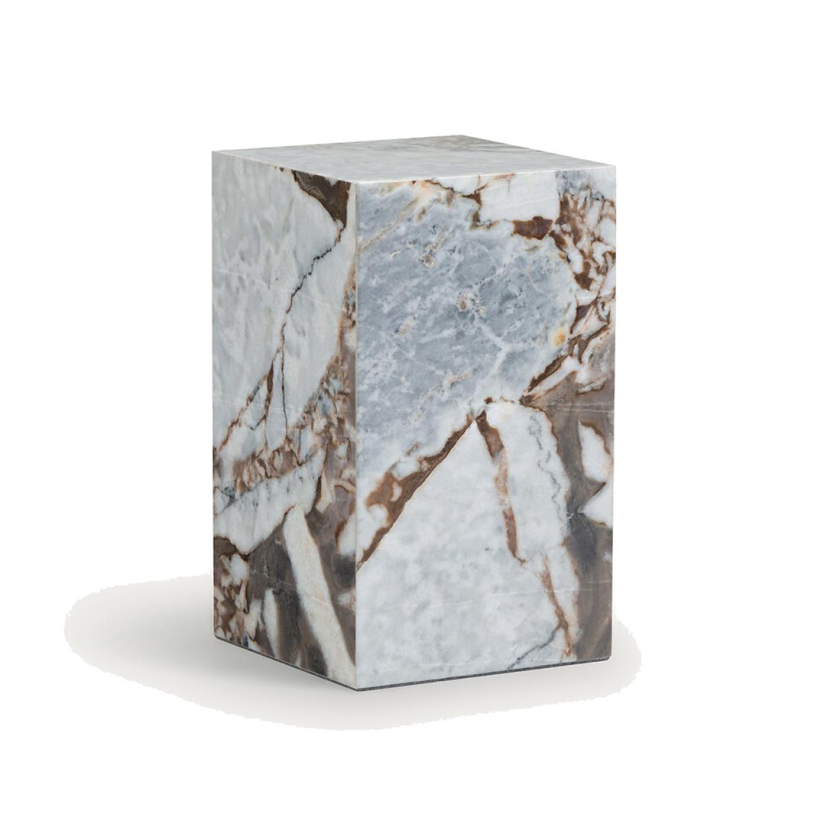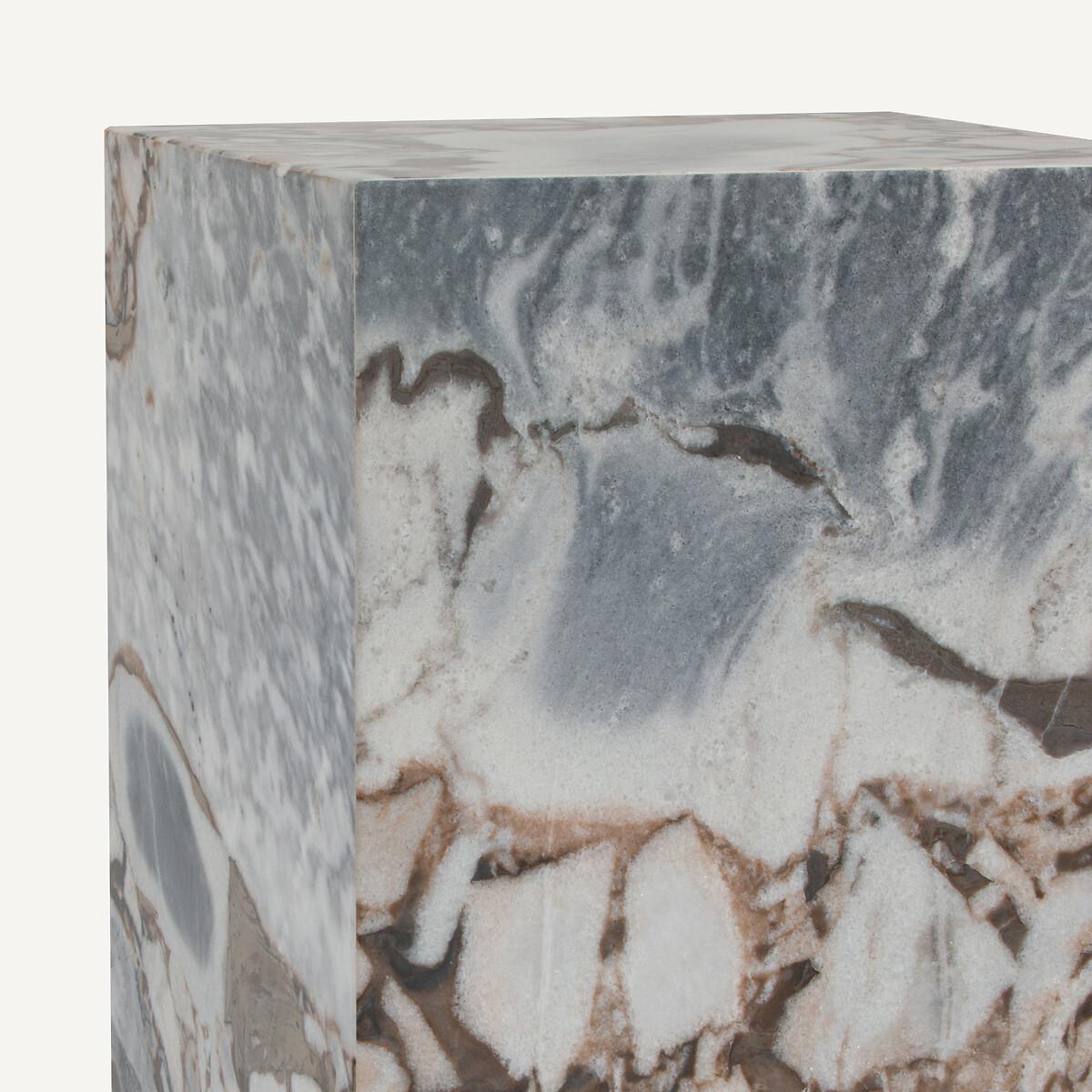 A marble table with a sheen whose veins draw abstract patterns in random hues. Each Alcana side table is a unique piece. Product Details • Structure in plywood (poplar wood), covered in marble. Each piece is unique, the marbling can be more or less marked and the colours varied.. Care Advice. Marble is a naturally porous material that is sensitive to stains. To preserve all its qualities, follow the advice below. :• Avoid placing hot objects on the surface, use coasters and trivets. • Immediately wipe up any spilled liquid with a white cloth dipped in lukewarm water and wrung out. • Maintain your marble regularly with products from our partner Akemi®. • We advise you to use Akemi® Crystal Clean Spray for your daily maintenance and, at least once a month, Akemi® Triple Effect Spray to clean and protect your marble surface.. This will reinforce the initial treatment and its water-repellent effect will prevent dirt from easily penetrating the stone. • If you want to use products other than those of our partner Akemi®, choose only p. H-neutral cleaners. • Acid, anti-limescale or bleach-based products are not recommended. Dimensions • Width: 30cm • Height: 50cm • Depth: 30cm • Weight: 15.5kgDelivery:. Sold pre-assembled. Available for home delivery. Dimensions and weight of parcel • 1 parcel • L64 x D44 x H43cm, 22kg.