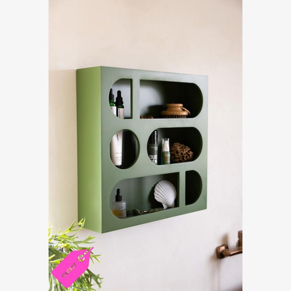 The Alcove Wall Shelf in Cactus Green is made for colour enthusiasts. A SECONDS piece with minor scuffs to the corners and a sticky mark on top, this shelf still brings plenty of charm. Fresh, earthy, and unapologetically bold, it instantly uplifts your space with its vibrant energy. The sculptural alcove design gives your favourite treasures – from books and plants to candles and curiosities – their moment to shine. Whether in a reading nook, hallway, or living room, this modern and playful shelf adds personality and effortless style to any wall.- Alcove Wall Shelf in Cactus Green- Measures: 48cm x 12cm x 48cm - Materials: MDF Wood - Handle with care and wipe clean only