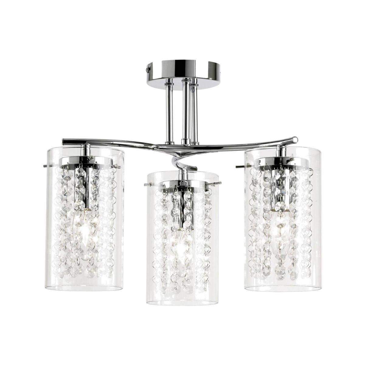 Alda 3 Light Semi Flush Ceiling Light Chrome, Clear Glass Drops, E14 - Chrome