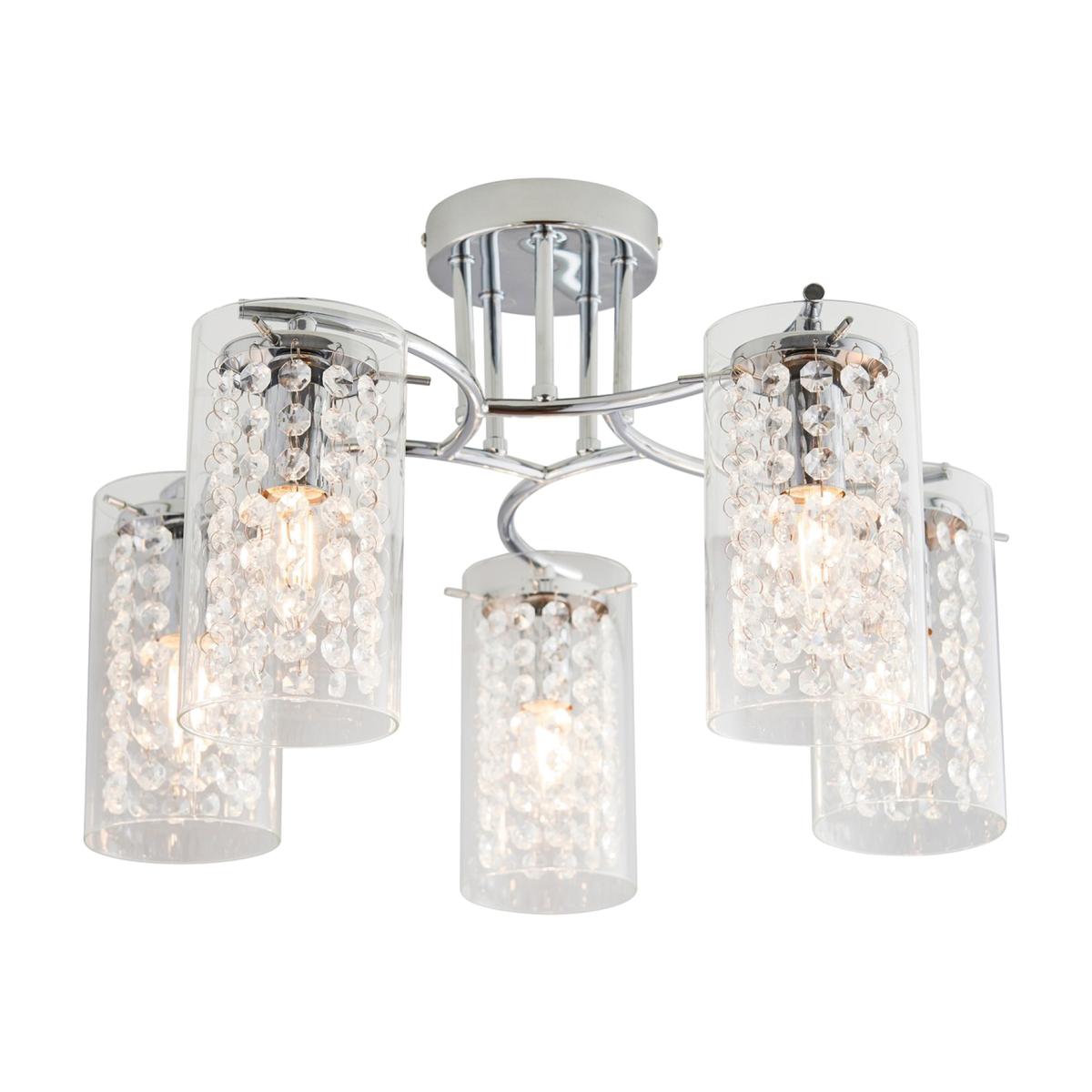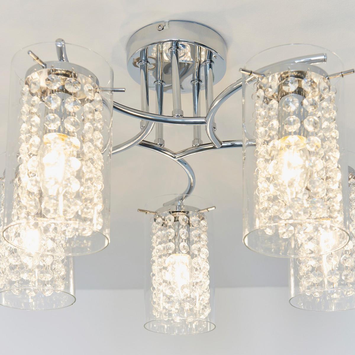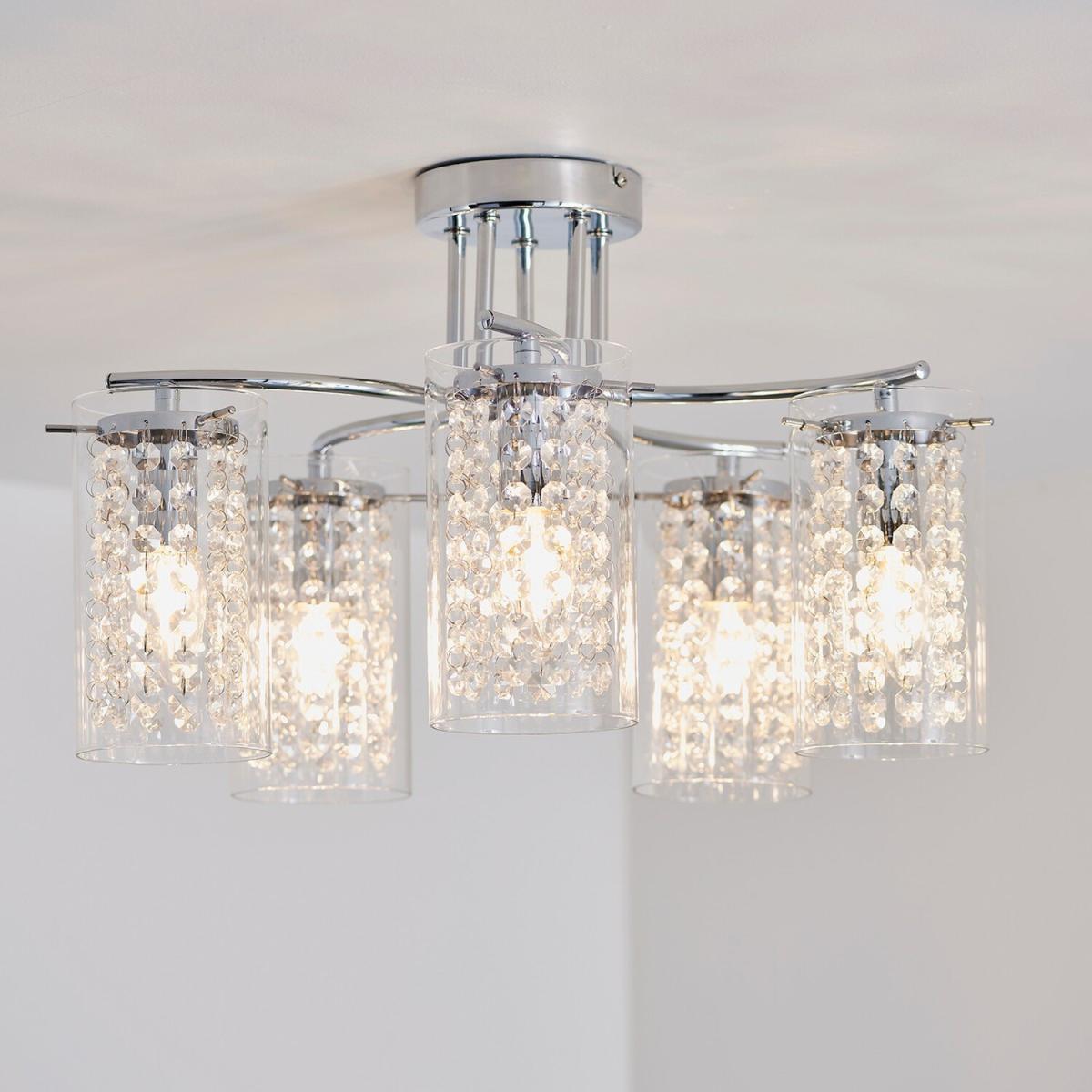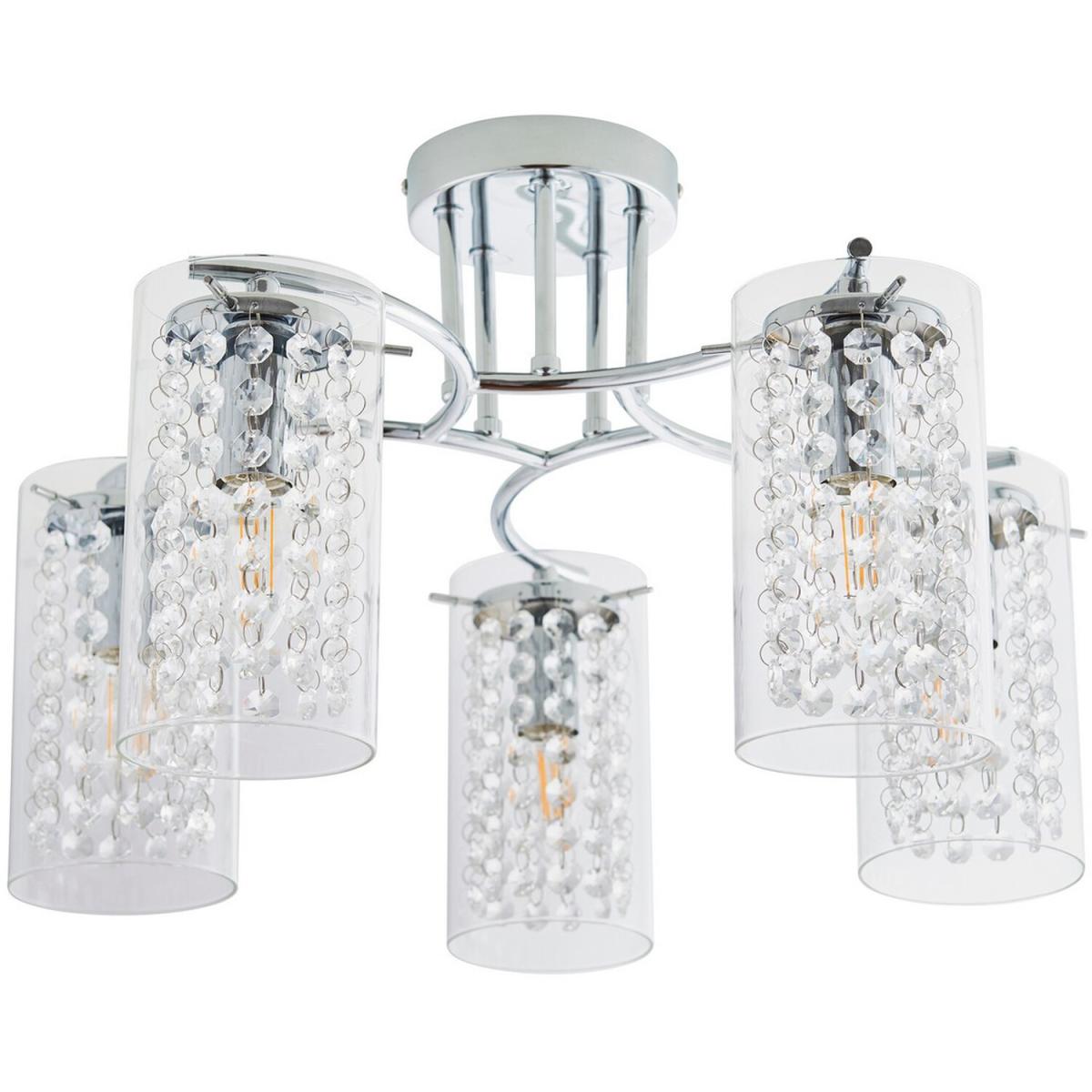 Alda 5 Light Semi Flush Multi Arm Ceiling Light Chrome, Clear Glass Drops, E14 - Chrome