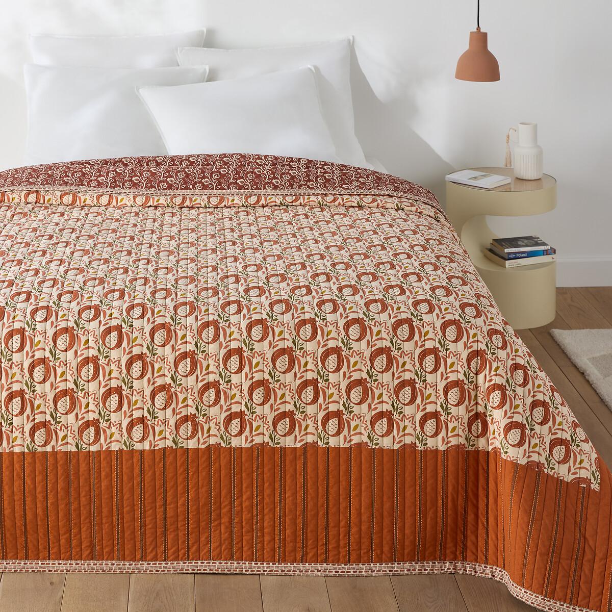 Introducing the Aldea patchwork bedspread, with warm tones on a washed cotton background and a stylised plant print on a background of stripes. A signature design by La Redoute Interieurs. The washed cotton has been delicately bleached during its manufacture. Soft, supple and comfortable, it softens over time. Its slightly wrinkled appearance is incredibly on-trend, and it does not require ironing. Product Details • 100% cotton cover • Washed cotton • 100% cotton filling, 180g/m² • Pomegranate print on the back • Back: leaf print • Ribbon printed around the edge. Care Advice • Machine washable at 30°CDimensions • 180 x 230cm • 230 x 250cm