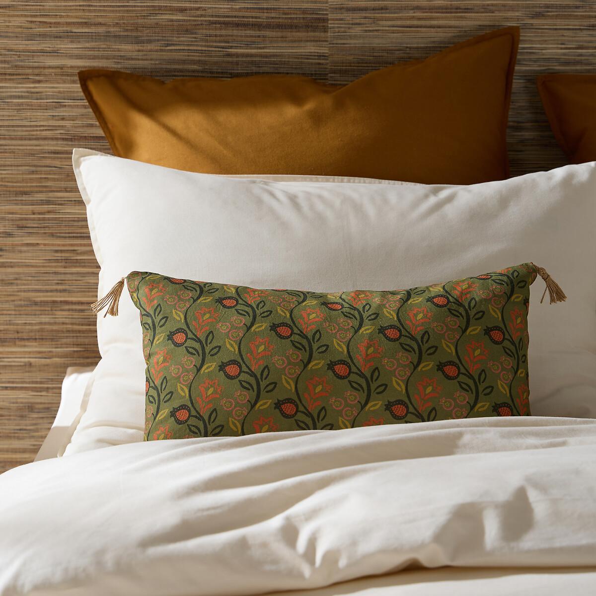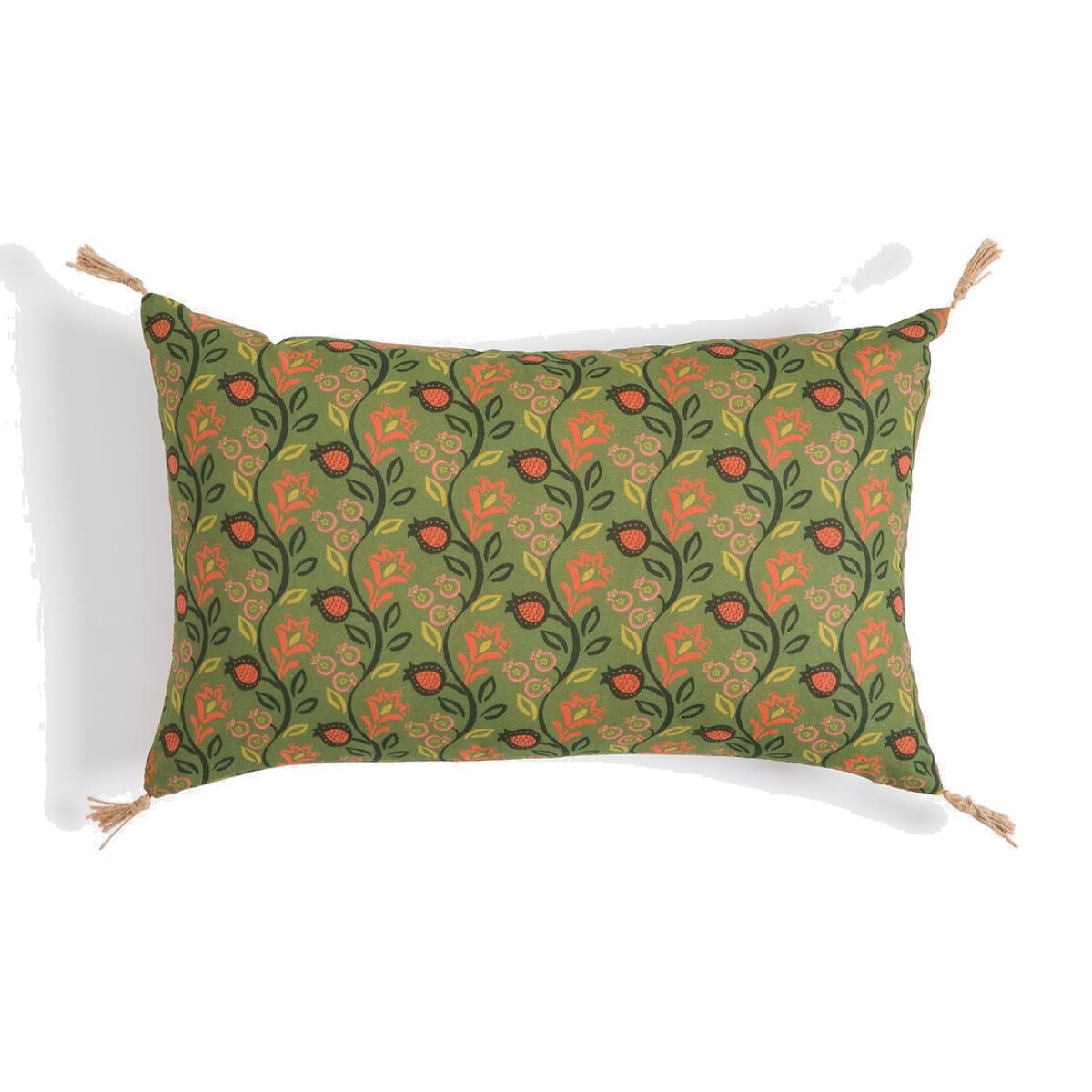 Dreaming of an escape? Headland on the Mediterranean basin ! Set against a khaki background, the Aldea cushion cover comes to life with floral-inspired graphic motifs and pompoms. A design that warms up the atmosphere, by La Redoute Intérieurs. Product Details • 100% cotton • Print front and back • Tassel on each corner • Zip fastening • Care Advice • Machine washable at 30°CDimensions • 30 x 50cm • OEKO-TEX® Standard 100. Standard 100 certification by OEKO-TEX® tests textile products for harmful substances via an independent, international label.