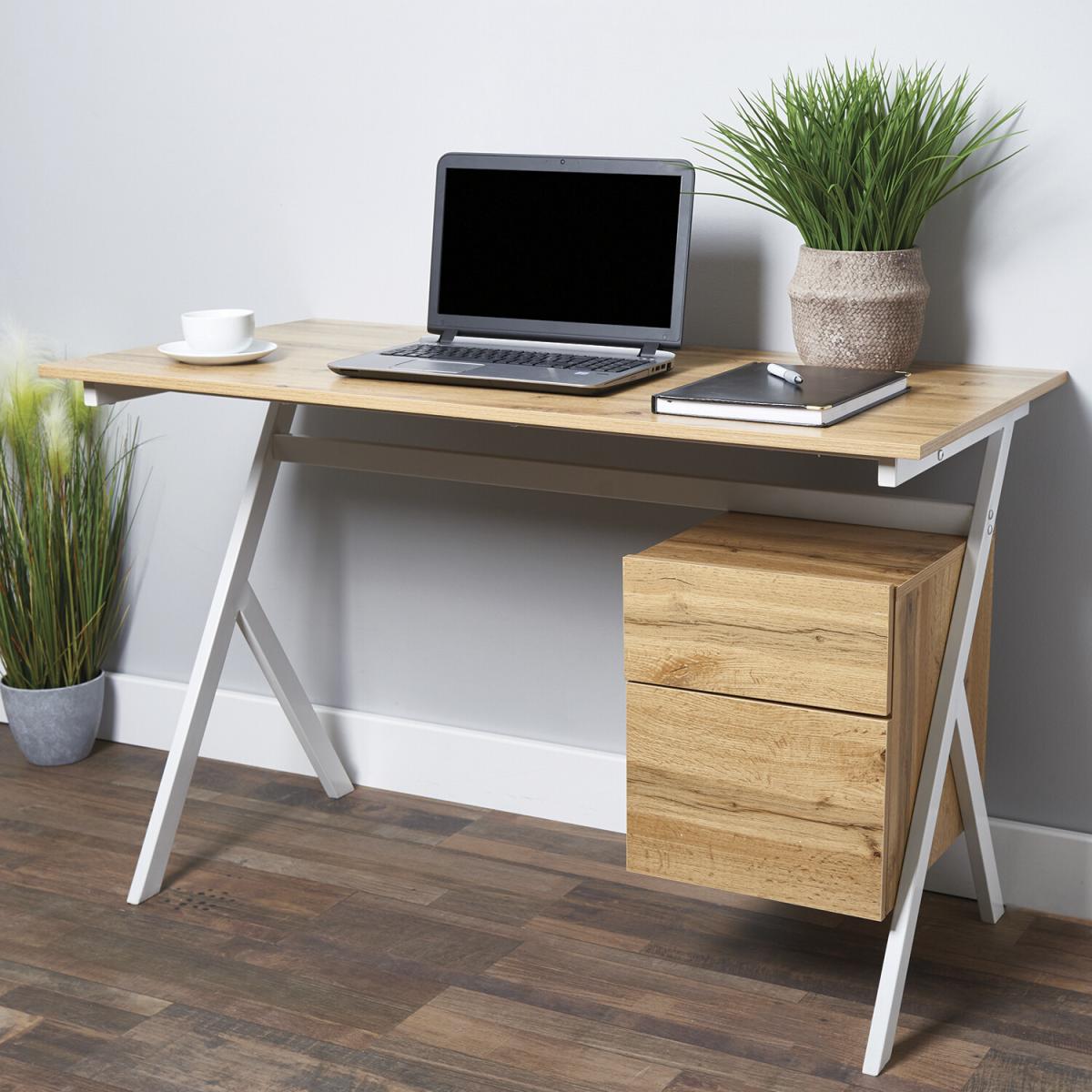 The perfect workstation for your bedroom, home office, or workplace, the Alden Desk with 2 drawers boasts a contemporary and clean design. Offering storage for all of your stationery, files, and study essentials in its attached drawer and cupboard, this desk is a practical choice for revision, work, and play.