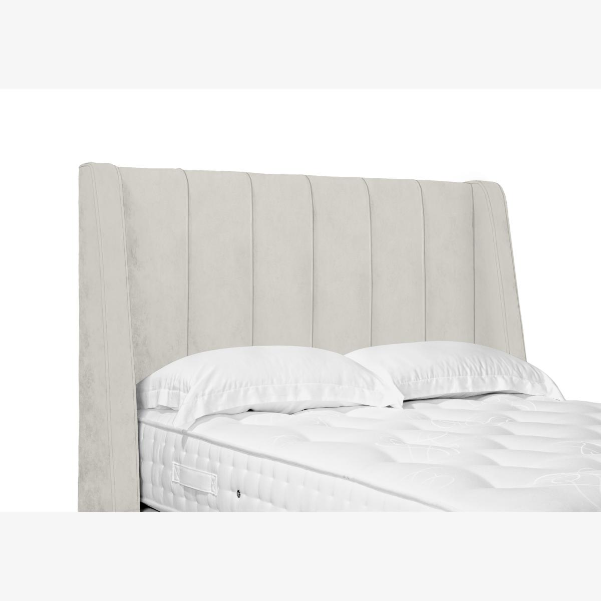 Discover The Artisan Collection, designed to bring handcrafted luxury and style to your bedroom. This premium range includes a selection of divan bases – from traditional platform tops offering a firmer feel to sumptuous pocket sprung options for enhanced mattress comfort. Many divan bases are available with storage drawers, in both standard and on-trend shallow designs. Complement your divan with one of the collection’s striking floor-standing headboards, including standout winged designs. Each piece in The Artisan Collection is beautifully upholstered in a wide choice of luxury fabrics and handcrafted in the UK, ensuring exceptional quality and elegant style for your sleep sanctuary. Our Alden floor standing headboard cleverly blends classic winged style with a contemporary aesthetic. With neatly-tailored fluting, it’s the perfect match for any style of bedroom. Why you'll love it This headboard has a tall winged profile and wide-spaced rows of fluting. Fully upholstered from top to floor for a flawless finish and a luxurious look. Made with sustainable FSC-sourced wood. In a choice of beautiful fabrics. Handcrafted in the UK. Find the Alden high floor standing headboard only at Furniture Village. What you need to know This floor standing headboard is supplied with bolts to attach it to a divan base. Available in single, small double, double, king and super king sizes. 145 cm tall. Clean regularly using a soft brush or vacuum with the curtain attachment. Deal with any spills promptly. Professional cleaning advised for oil- and grease-based stains. Some fabrics can show wear on areas of more use or in direct sunlight. Item code: ALDEH150--015