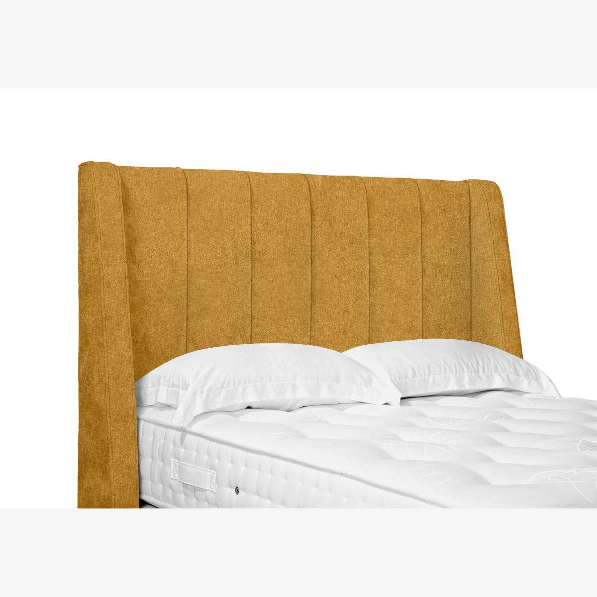 Discover The Artisan Collection, designed to bring handcrafted luxury and style to your bedroom. This premium range includes a selection of divan bases – from traditional platform tops offering a firmer feel to sumptuous pocket sprung options for enhanced mattress comfort. Many divan bases are available with storage drawers, in both standard and on-trend shallow designs. Complement your divan with one of the collection’s striking floor-standing headboards, including standout winged designs. Each piece in The Artisan Collection is beautifully upholstered in a wide choice of luxury fabrics and handcrafted in the UK, ensuring exceptional quality and elegant style for your sleep sanctuary. Our Alden floor standing headboard cleverly blends classic winged style with a contemporary aesthetic. With neatly-tailored fluting, it’s the perfect match for any style of bedroom. Why you'll love it This headboard has a tall winged profile and wide-spaced rows of fluting. Fully upholstered from top to floor for a flawless finish and a luxurious look. Made with sustainable FSC-sourced wood. In a choice of beautiful fabrics. Handcrafted in the UK. Find the Alden high floor standing headboard only at Furniture Village. What you need to know This floor standing headboard is supplied with bolts to attach it to a divan base. Available in single, small double, double, king and super king sizes. 145 cm tall. Clean regularly using a soft brush or vacuum with the curtain attachment. Deal with any spills promptly. Professional cleaning advised for oil- and grease-based stains. Some fabrics can show wear on areas of more use or in direct sunlight. Item code: ALDEH150--052