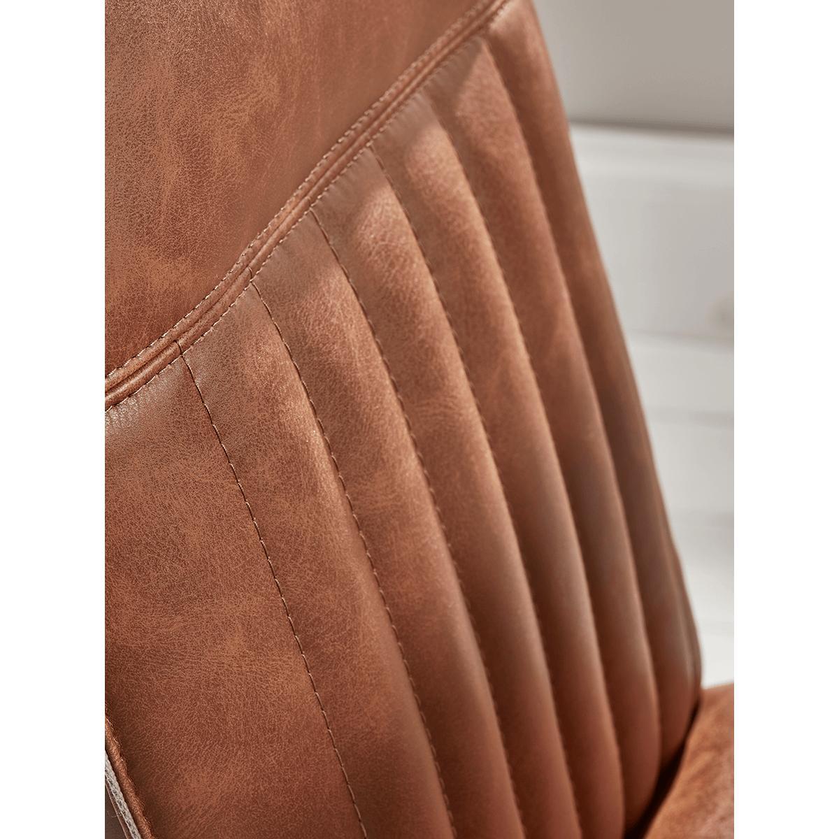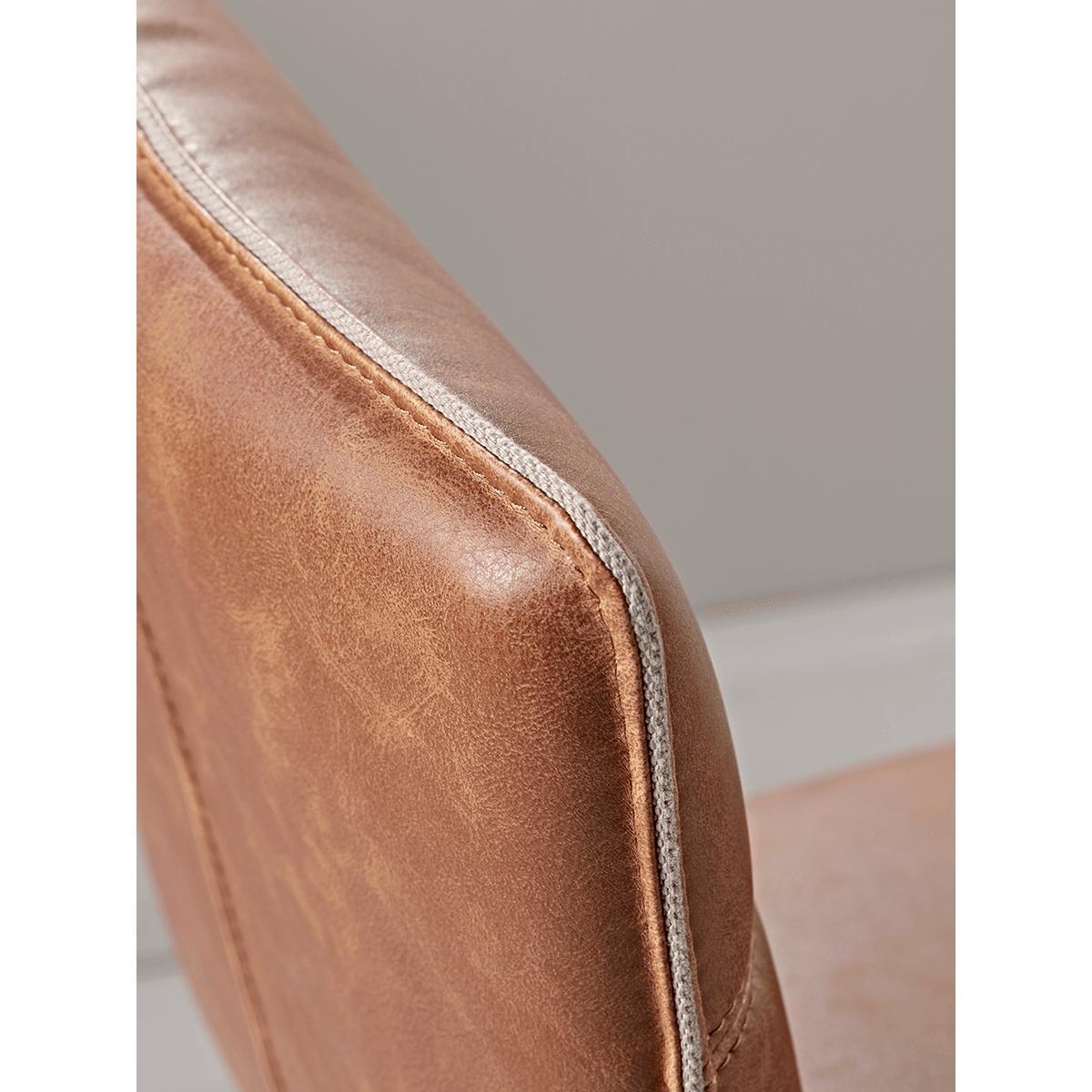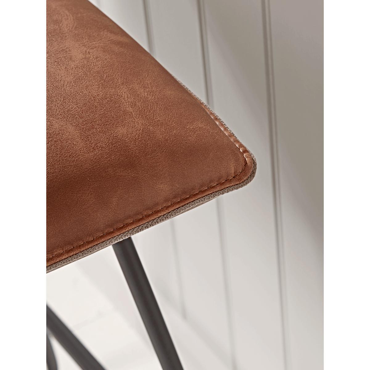 Perfect for an edgy, contemporary kitchen, our New York loft inspired bar stool features a black metal frame and faux tan leather upholstered seat and has a twisting seat function. Each stylish seat has a ribbed stitched detail to the backrest and a wide footprint for stability and comfort. Also available in. Grey.