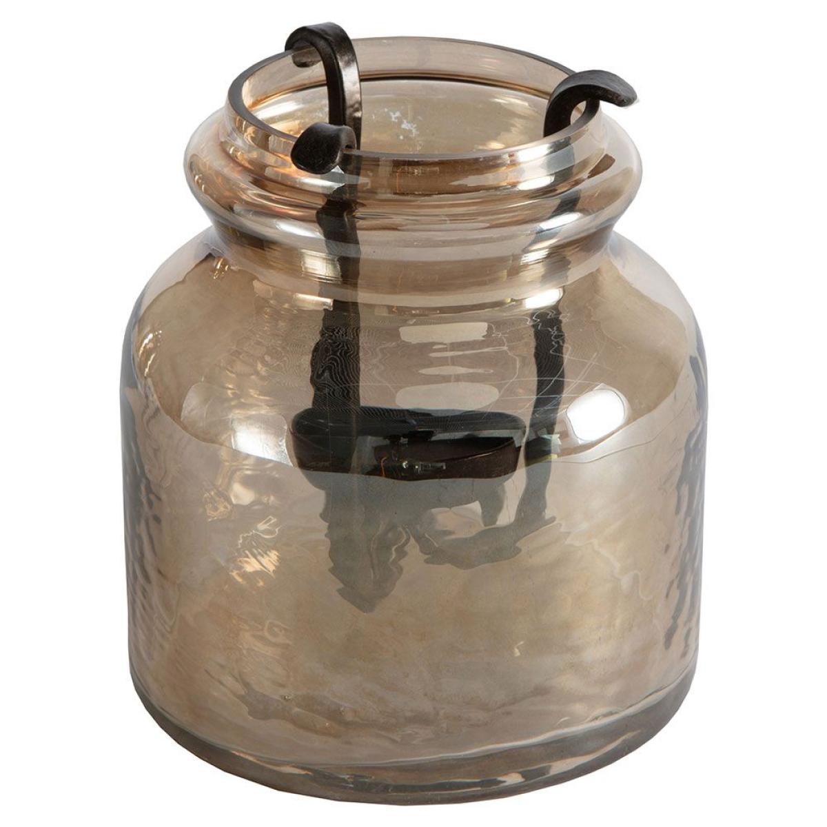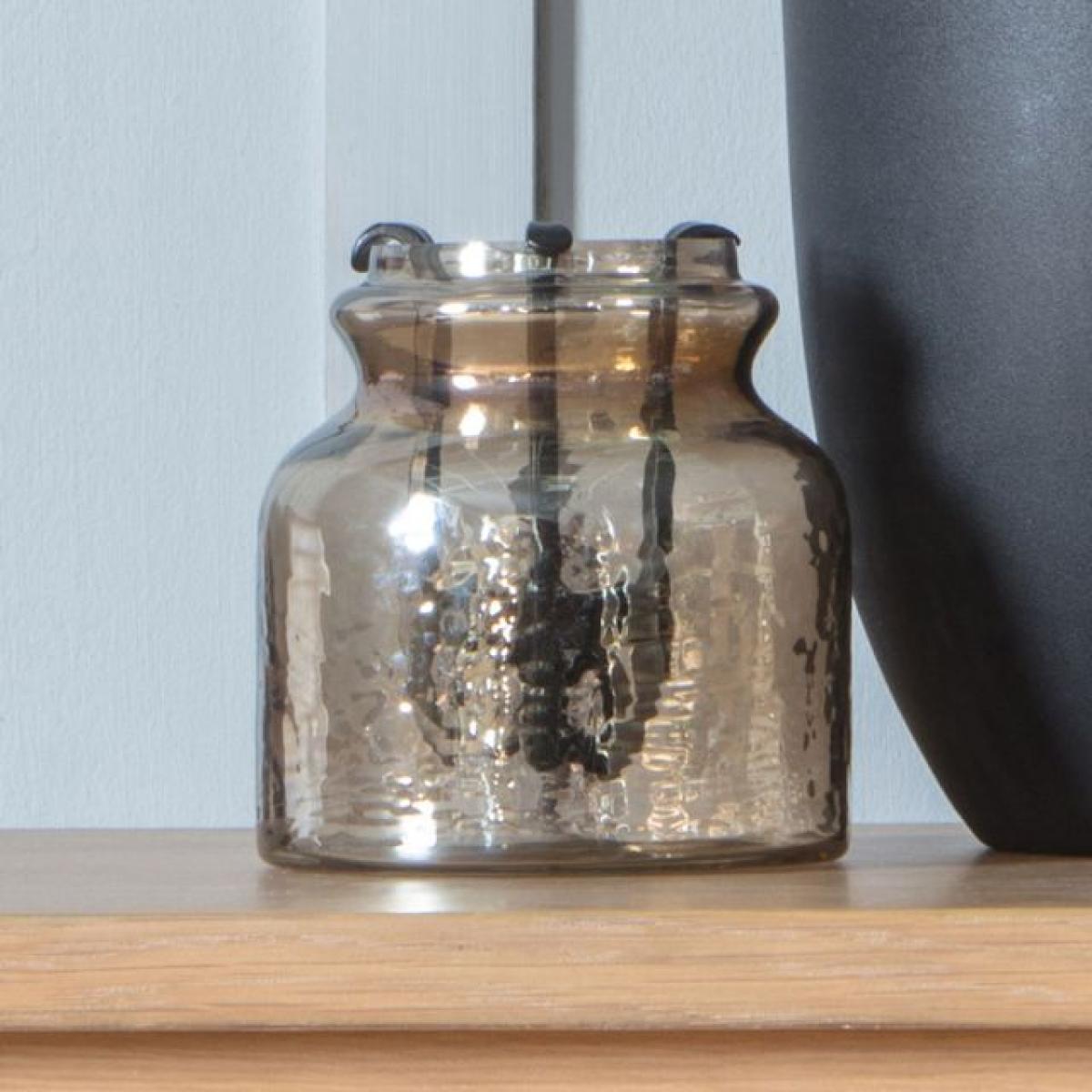 Stylish and unique, the Alder lantern features a jam jar shape holder with a metal tealight holder that hangs down inside the jar with a bronze finish.