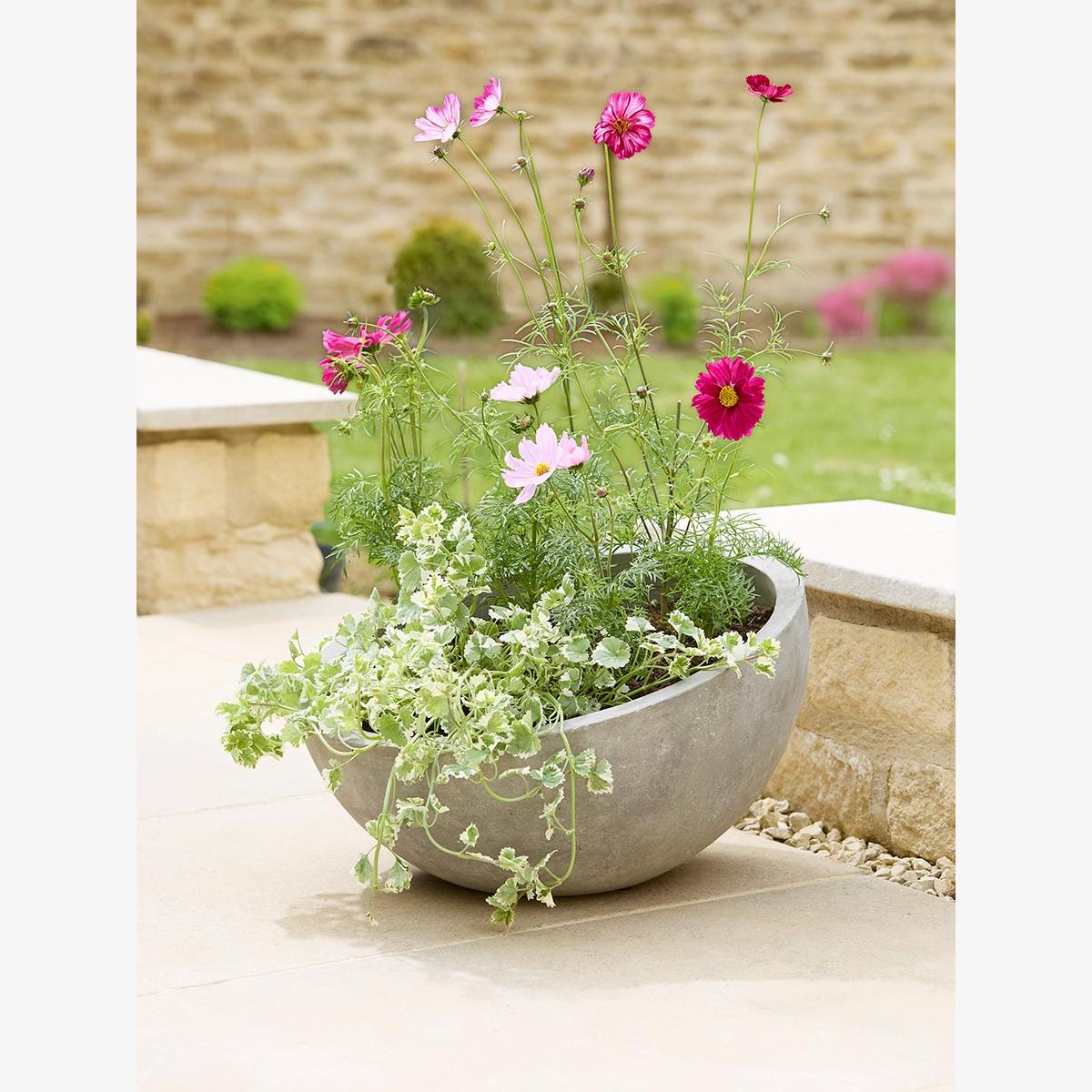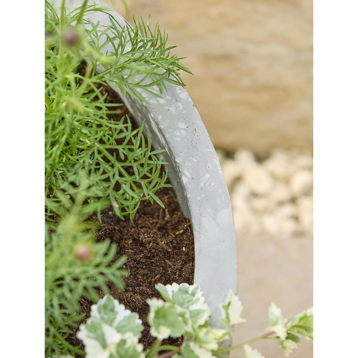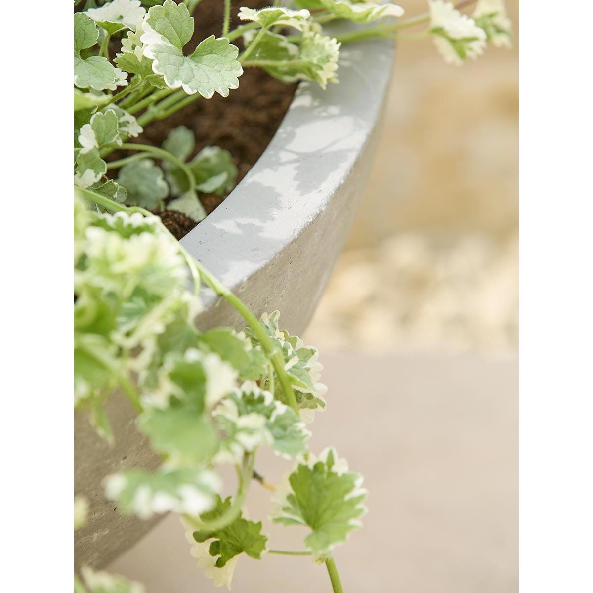 Unique in style, our Alder Planter is crafted from concrete creating a sculptural look that adds a modern twist to a traditional design. Enjoy watching greenery thrive or complete your garden with bright florals that will contrast wonderfully with the neutral tones of this planter.