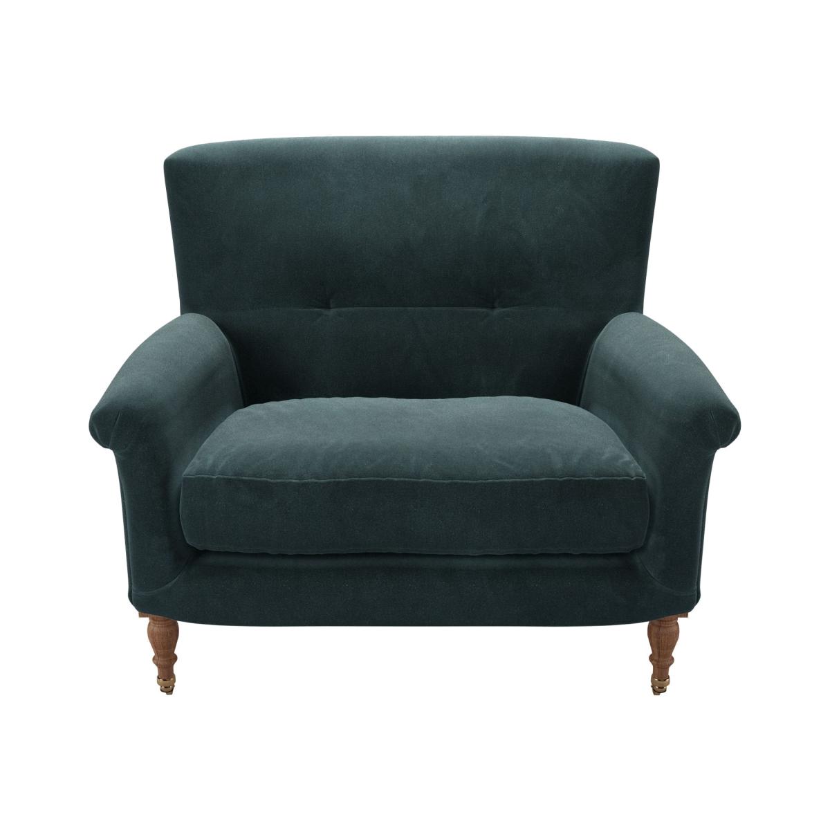 Alderney Loveseat in Deep Forest Aquaclean Clever Velvet