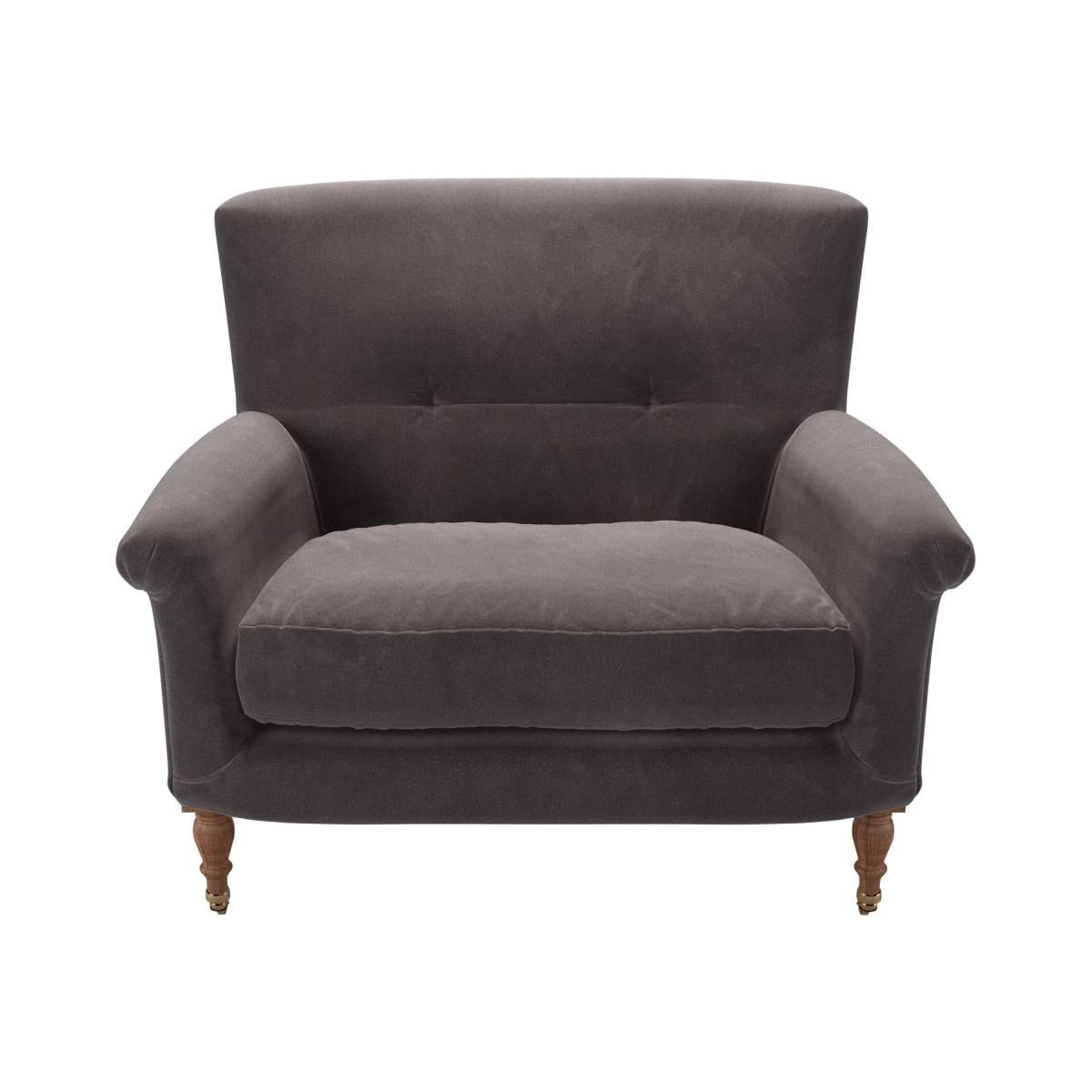 I love this loveseat for its structured silhouette and versatile Shale Aquaclean velvet, which adds a subtle touch of sheen and durability. It works particularly well in both contemporary and traditional interiors, bringing a cosy yet polished feel to living rooms or smaller spaces. Styling tip: pair it with neutral tones or soft pastels to highlight the velvet’s understated luxury, or contrast it with bolder colours for a more eclectic vibe. Its compact size makes it perfect for creating intimate seating areas, while the classic wooden legs give it a timeless appeal that can be easily dressed up with textured cushions or throws for added comfort.