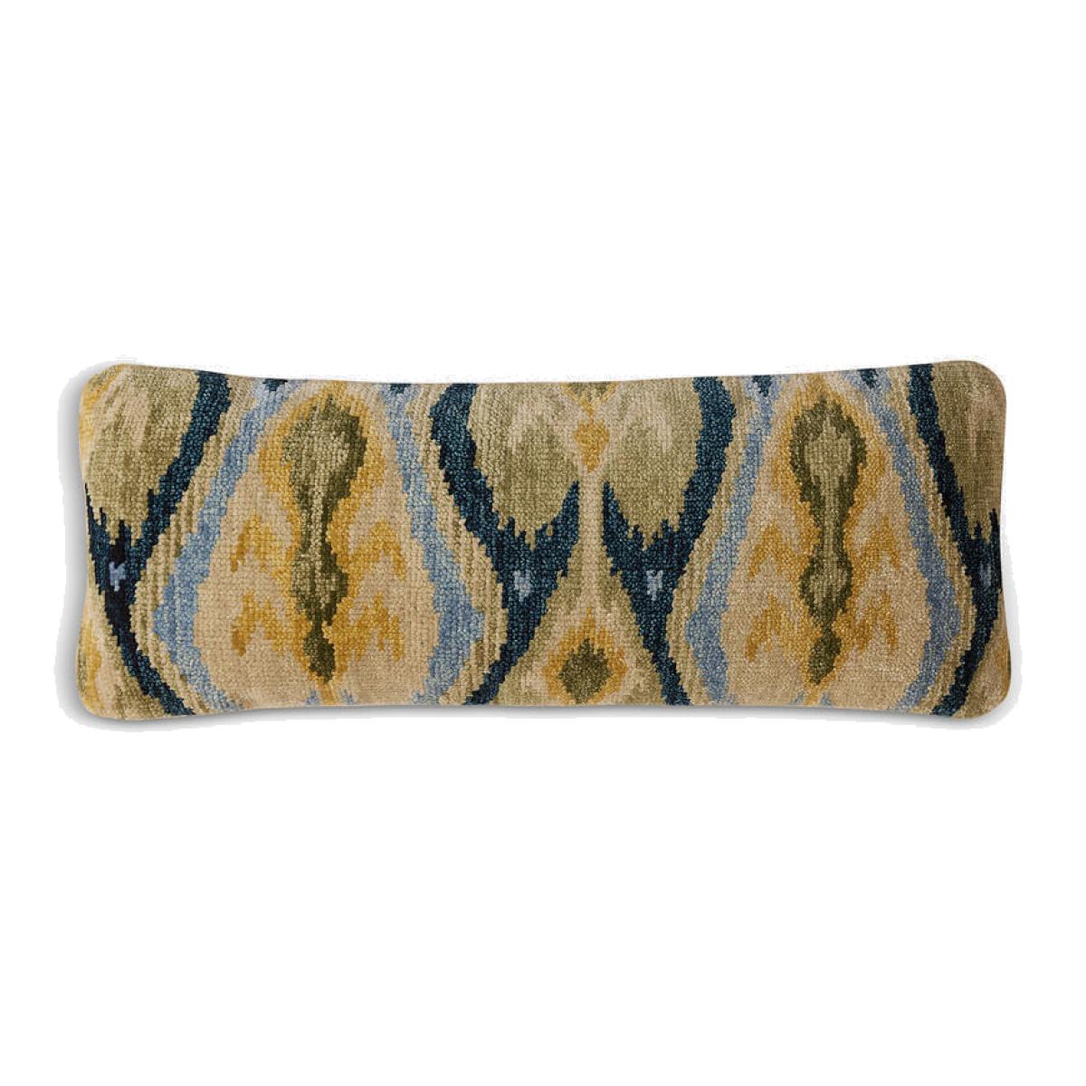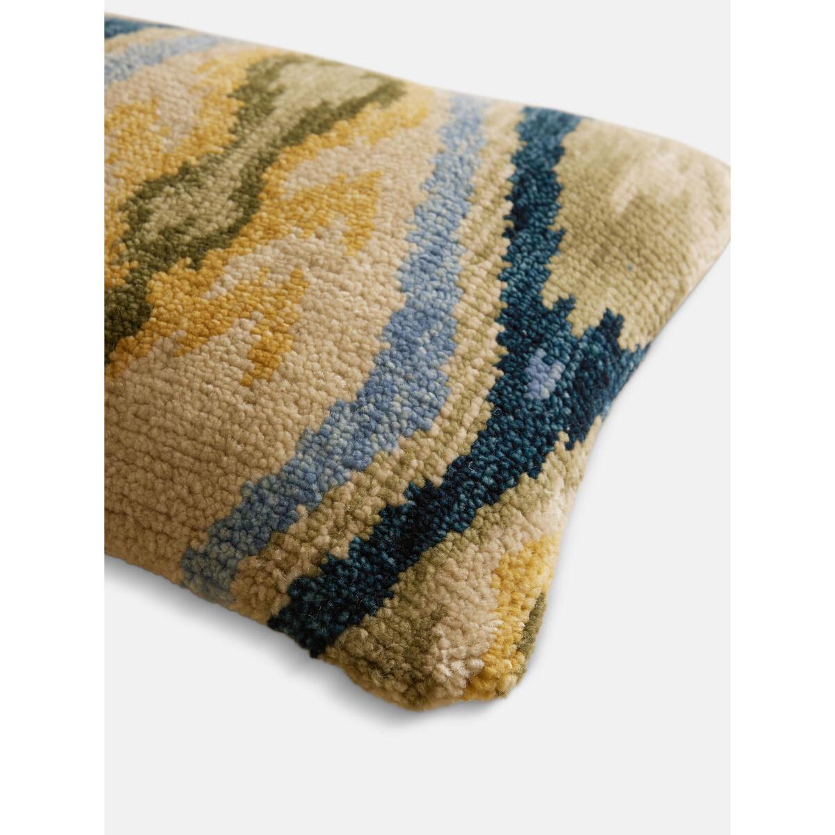 Hand-knotted in India by skilled artisans, the front of the Alderton bolster cushion features a wool Ikat-inspired design in tones of blue, green and yellow to reference similar patterns found in Soho House Austin. Display with the rust Alderton cushion to bring warmth and character into your home. Wool front Cotton reverse Hand-knotted in India Bolster-style cushion Blue, green and yellow tones Inspired by Ikat-style fabrics in Soho House Austin Available in Rust