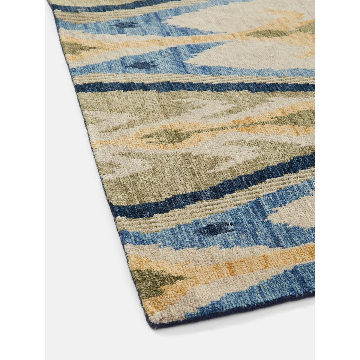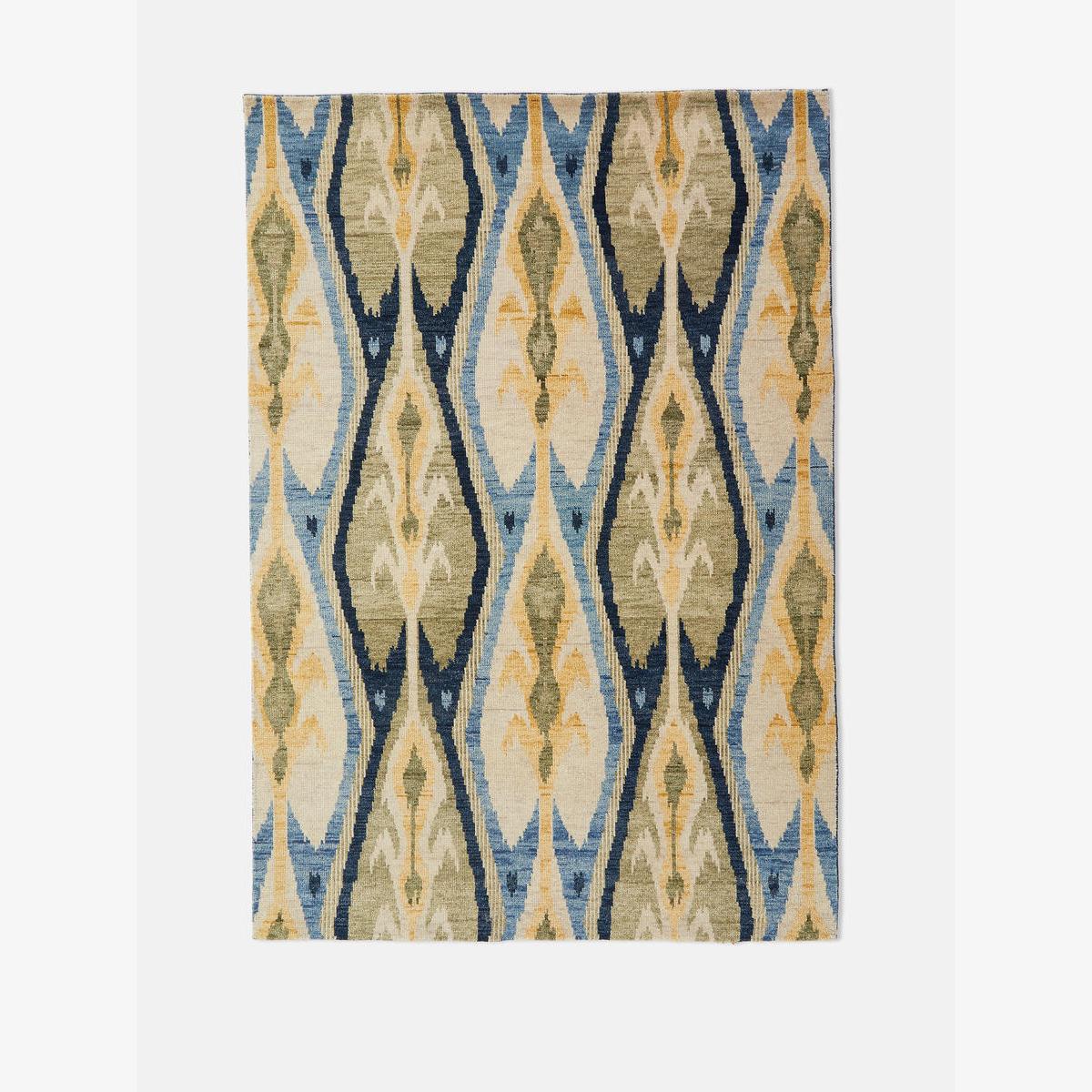 Hand-knotted in India by skilled artisans, the Alderton rug looks to the oversized, Ikat-inspired patterns found in Soho House Austin. A wool pile lends comfort, while a cool colour palette of navy, sage and olive tones instantly uplifts any area of the home. Wool pile with a cotton ground Hand-knotted in India Navy, sage and olive tones Inspired by Ikat-inspired fabrics in Soho House Austin Available in five rug sizes and two runners