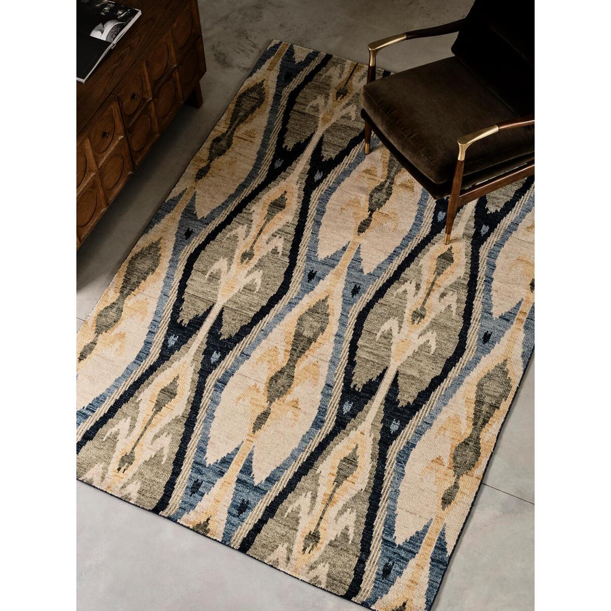 Hand-knotted in India by skilled artisans, the Alderton rug looks to the oversized, Ikat-inspired patterns found in Soho House Austin. A wool pile lends comfort, while a cool colour palette of navy, sage and olive tones instantly uplifts any area of the home. Wool pile with a cotton ground Hand-knotted in India Navy, sage and olive tones Inspired by Ikat-inspired fabrics in Soho House Austin Available in five rug sizes and two runners