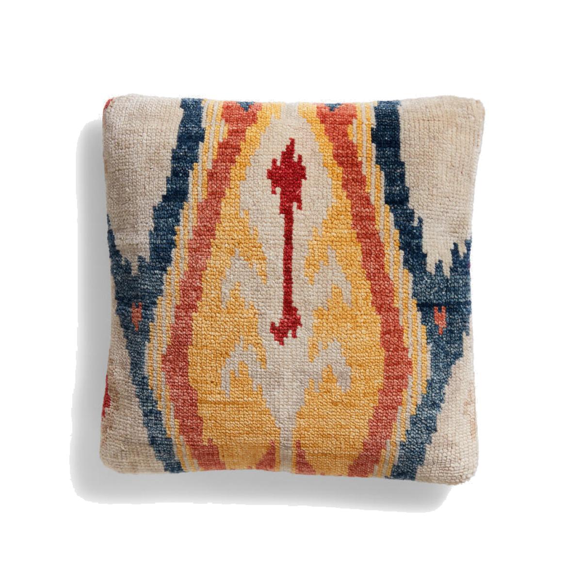 Hand-knotted in India by skilled artisans, the front of the Alderton cushion features a wool Ikat-inspired design in tones of rust and yellow to reference similar patterns found in Soho House Austin. Display with the blue Alderton cushion to bring warmth and character into your home. Wool front Cotton reverse Hand-knotted in India Rust and yellow tones Inspired by Ikat-style fabrics in Soho House Austin Available in Blue