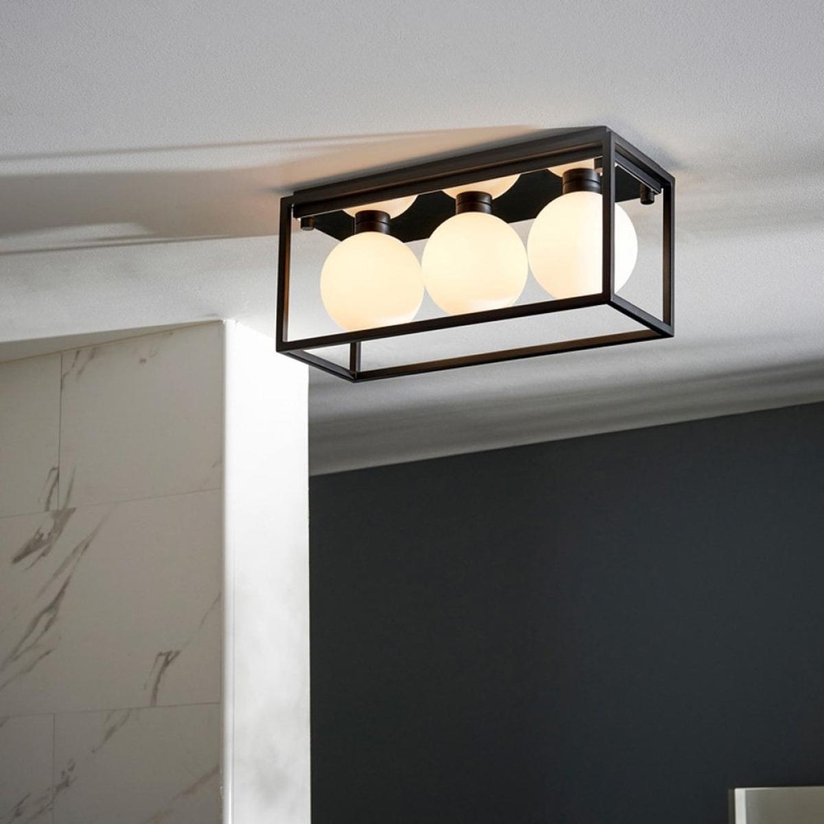 The Aldgate Flush Ceiling Light brings a sleek and contemporary design to your bathroom or en suite. The matte black metal frame features chrome plated detailing, giving a stylish option for your bathroom. The detached shade makes it easy to change each of the three lightbulbs, while the matte opal sphere glass shades create a slow glow effect around the room. This product is suitable for use in a bathroom and has an IP44 rating, making it ideal for areas where water splashes and condensation are likely to occur.