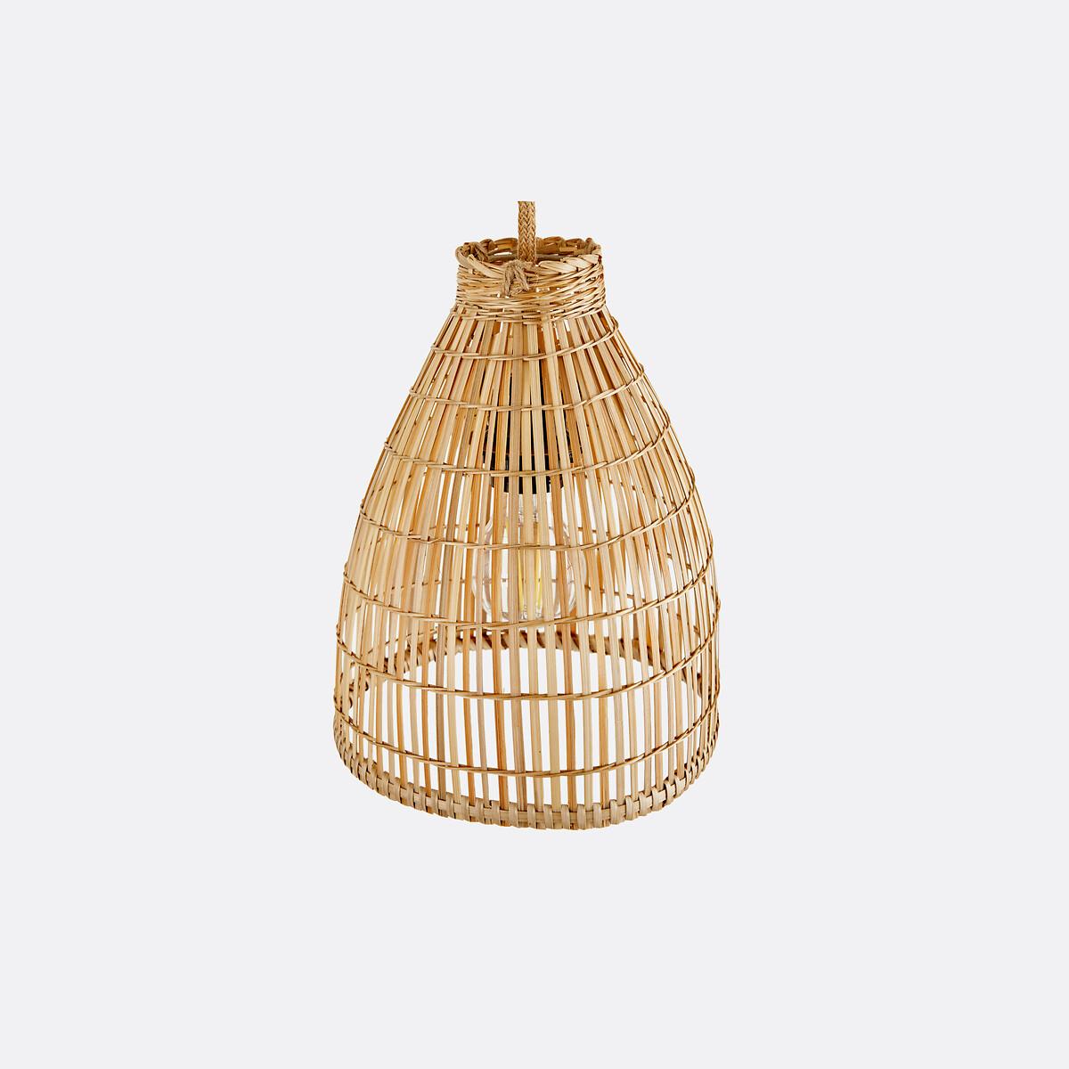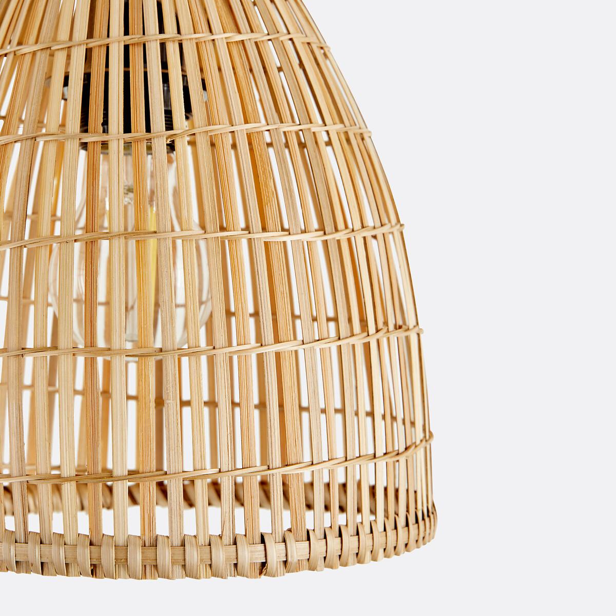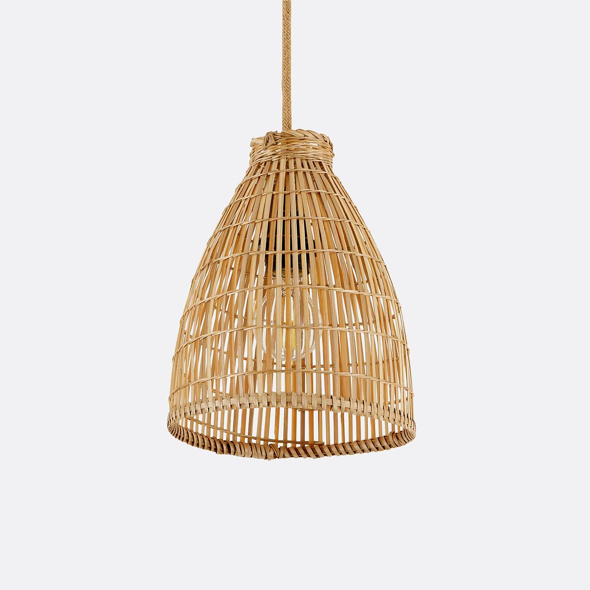 Inspired by a fisherman's trap, this bamboo pendant light releases a soft and warm light. Perfect for giving a bohemian and summer atmosphere to all interiors. Product Details • Bamboo • Iron structure covered with epoxy paint • Compatible with E27 bulb (not included) • Artisanal craftsmanship • This product is sold non-electrified. Find the Baulind electric cable sold on the site. Dimensions • Diameter: 20cm • Height: 25.5cm. Dimensions and weight of parcel1 parcel • L22 x H28 x D22cm. 0.73kg