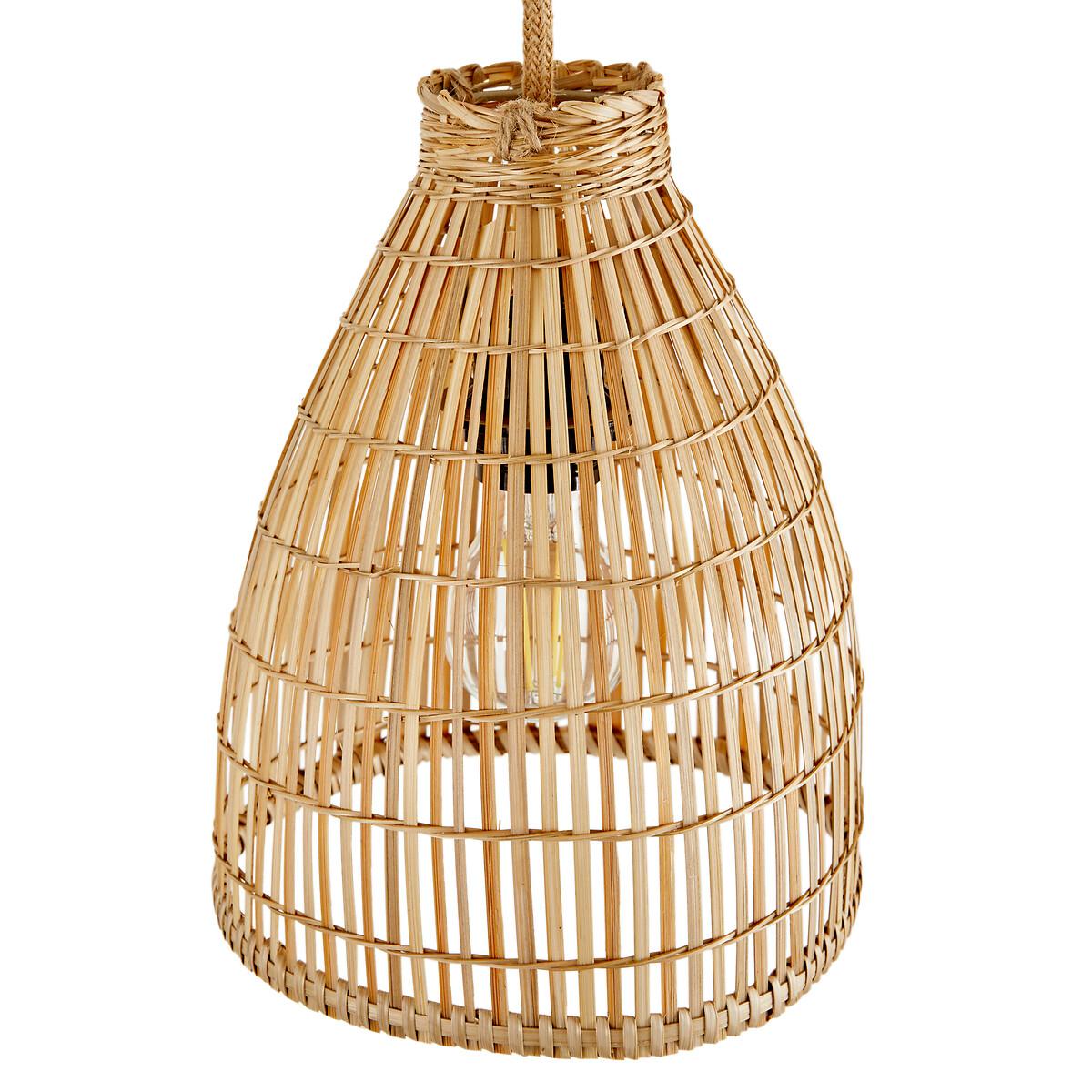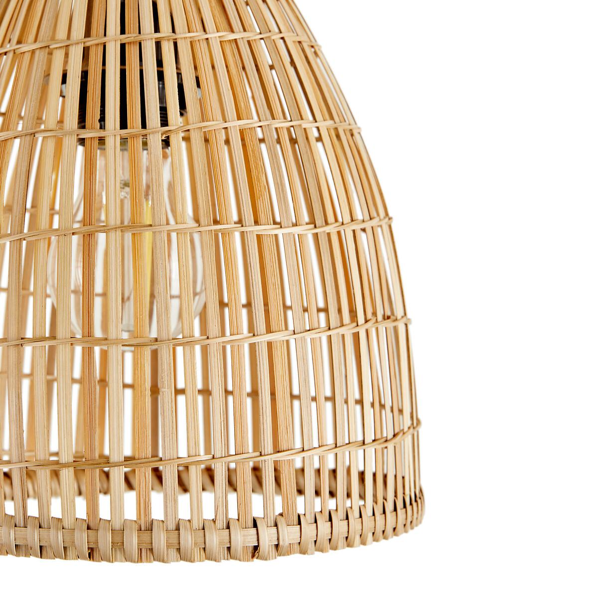 Inspired by a fisherman's trap, this bamboo pendant light releases a soft and warm light. Perfect for giving a bohemian and summer atmosphere to all interiors. Product Details • Bamboo • Iron structure covered with epoxy paint • Compatible with E27 bulb (not included) • Artisanal craftsmanship • This product is sold non-electrified. Find the Baulind electric cable sold on the site. Dimensions • Diameter: 20cm • Height: 25.5cm. Dimensions and weight of parcel1 parcel • L22 x H28 x D22cm. 0.73kg