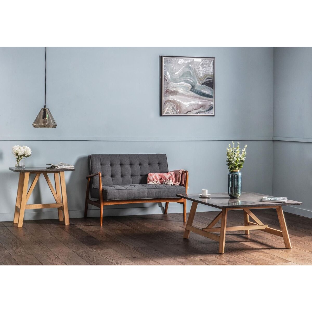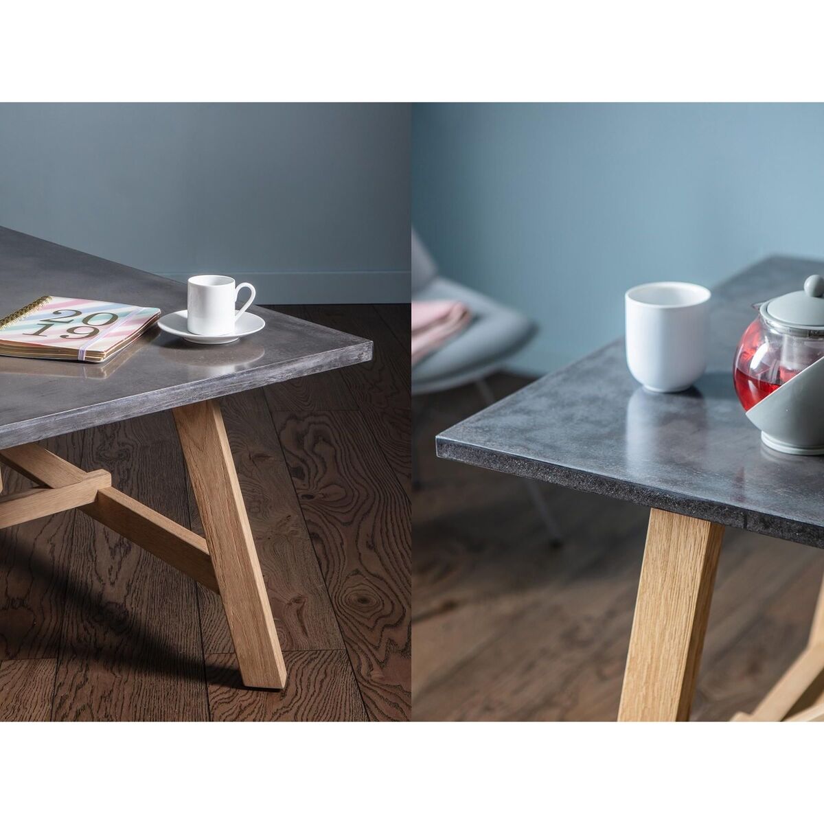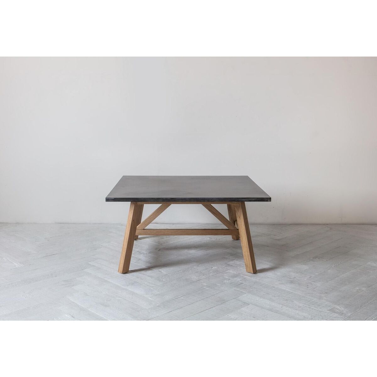 Gather around a delicious brew in style with the Alec coffee table. In the Alec, modern design meets industrial nostalgia with an interesting mix of materials and textures - pairing a solid European oak base with a burnished-effect top for added visual appeal. A natural focal point, the Alec will delight those with a flair for Mid-Century interiors, clean-lined shapes and pared-back style. Place the Alec next to the sofa to create a stylish base for your favourite vases, portraits or weekend reads, teaming them with a potted plant or statement table lamp to maximise impact.