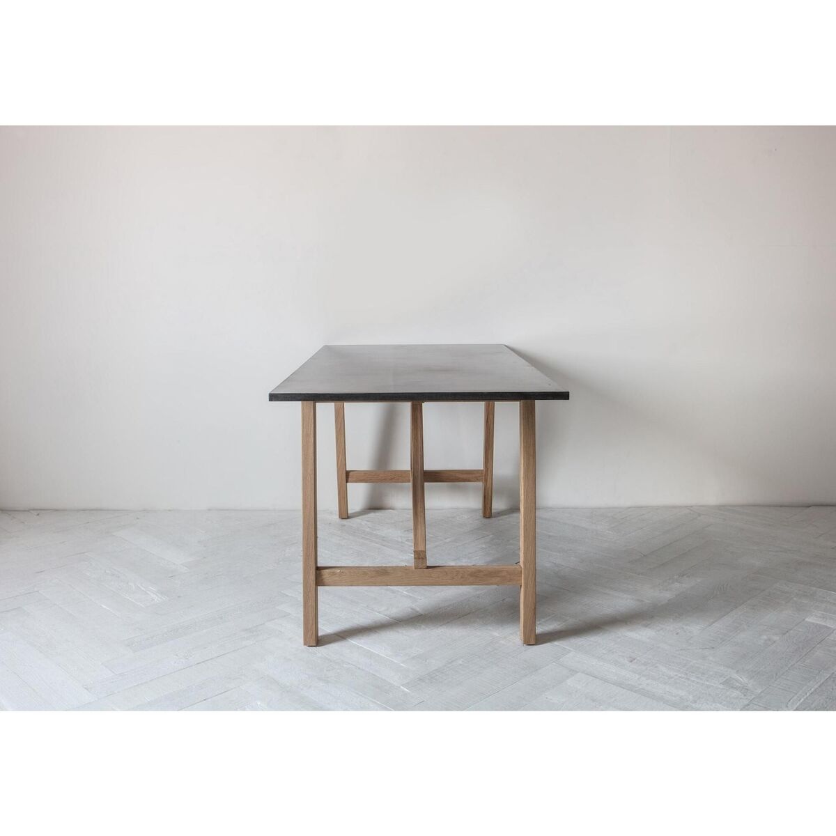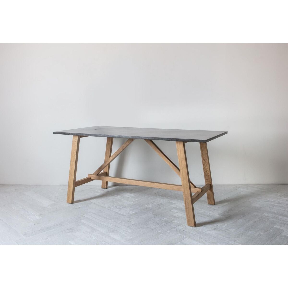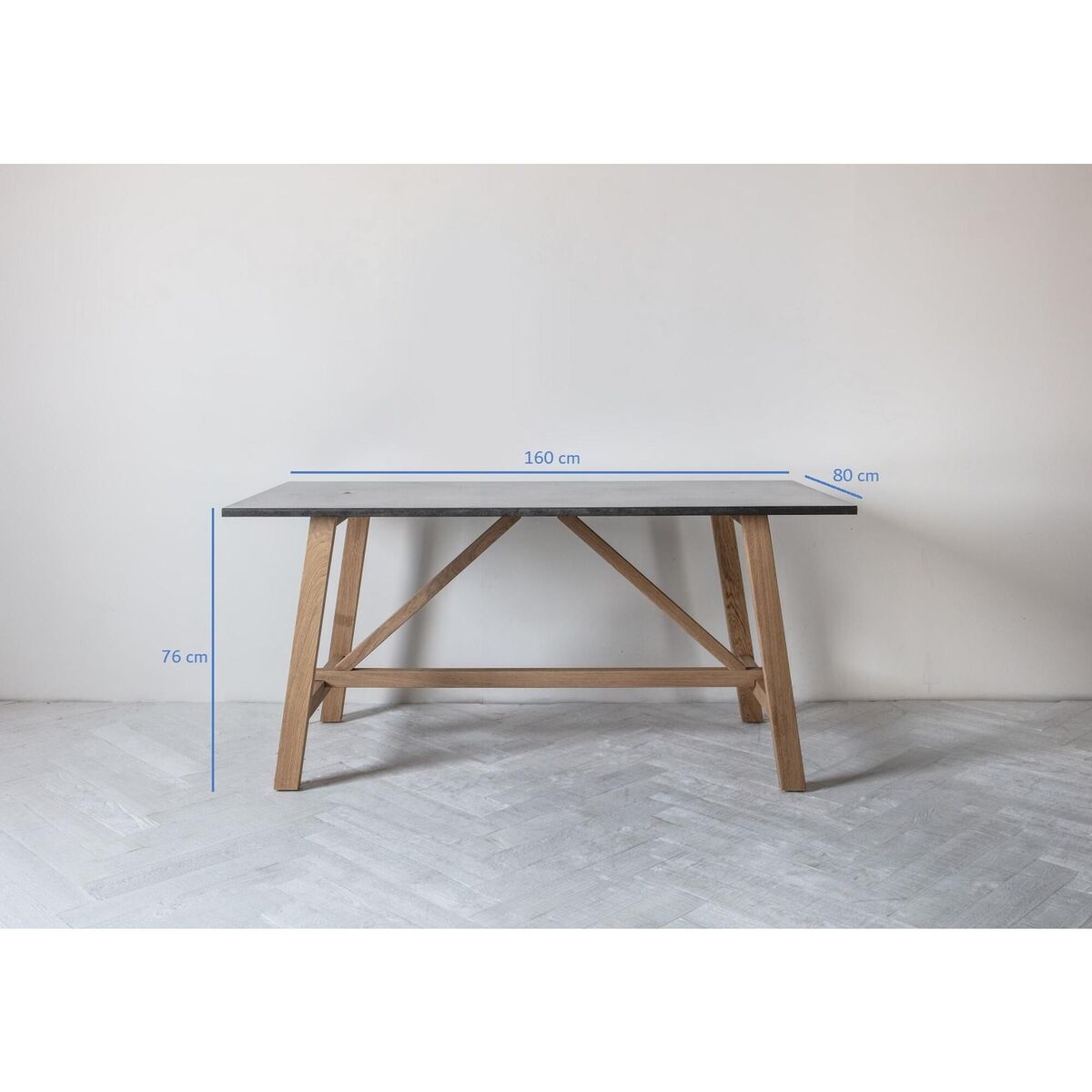 The Alec dining table is like nothing you've seen before - architectural, slightly industrial and beautifully contemporary at the same time. It is crafted from solid European oak, that lends it a natural character which beautifully complements the edgy, metallic bronze finish of its tabletop. The trestle design of its base makes it look light and airy without compromising on strength and robustness. Large in size and generous in style, the Alec sits up to six, providing a stylish scenario for both everyday meals and special occasions. Place it in a sunny dining room and see its top shine and reflect the natural light while infusing a feeling of beautiful calm into the room.