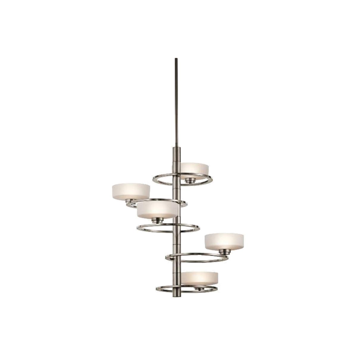 Like the sun attracts the planets, this 5 light chandelier uses celestial inspiration to create its own gravitational force. Concentric rings orbit around a slim and sleek cylindrical centre column. Oval globes seem to float almost weightlessly on top, and the Classic Pewter finish delivers the final soft contemporary touch. Also available in this range 3lt Chandelier, 5lt Chandelier, and 1lt Wall Light.