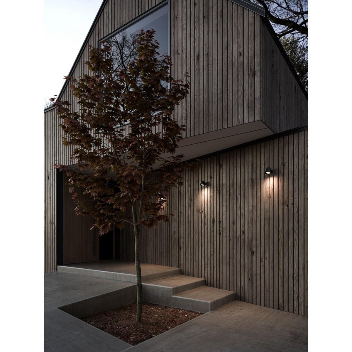Modern and compact design. Well suited for Nordlux Smart Bulb. Designed for both outdoor and bathroom use, Sleek and modern, the Aleria Outdoor Down Wall Lamp can also be used for indoor bathroom use. Its compact design is well suited to small spaces while the black finish is easy to pair with existing fixtures. Get the right amount of light for your space with this versatile wall fixture.
