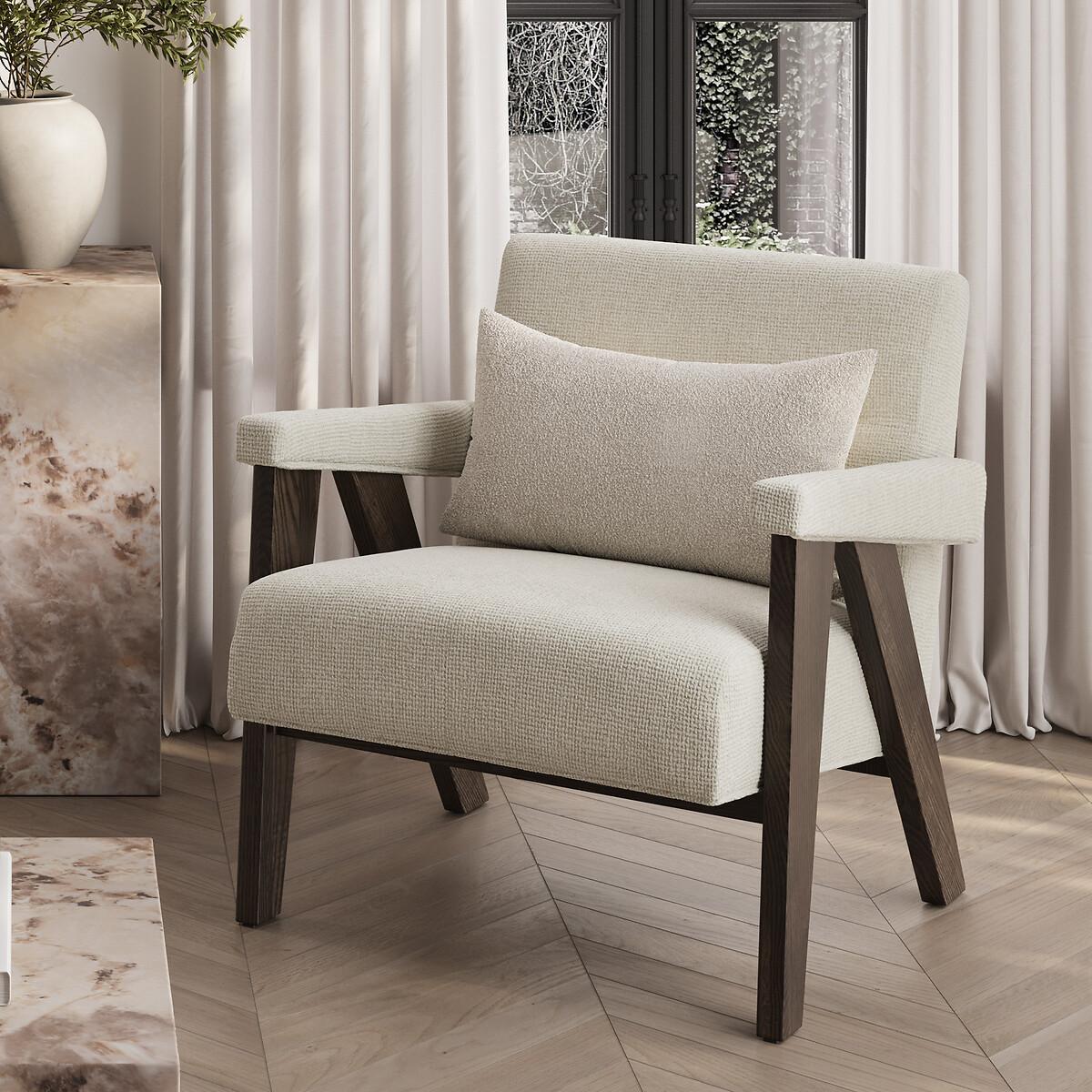 The Alessa Chair showcases velvet tweed fabric complemented by a warm wooden frame. Featuring comfortable padded armrests and a cushioned seat, it is available in two colorways. Perfect as a standalone piece or as a pair around a table. Product Details • Upholstered in Velvet Tweed fabric • Foam fillings • Warm brown frame • Comfortable padded armrests and seat • Wooden legs • Scatter cushion not included • Full assembly required • 1 year manufacturers warranty. Product Composition - Solid Ash, Foam, Fabric. Product Dimensions • Total Dimensions - 70 cm x 80 cm x 73 cm , Weight - 16 KG • Seat Height (from floor): 46 cm • Back Height (from floor): 73 cm • Seat width: 58.5 cm • Seat depth: 56 cm • Arm height (from floor): 58 cm • Clearance to floor: 27.5 cm Package Dimensions - 69 cm x 69 cm x 60 cm, Weight 20 kg. Please note: this product cannot be be delivered to all Offshore Islands Northern Ireland or Republic of Ireland. This product will be dispatched by one of our trusted suppliers. You’ll be contacted by their selected courier about your delivery.