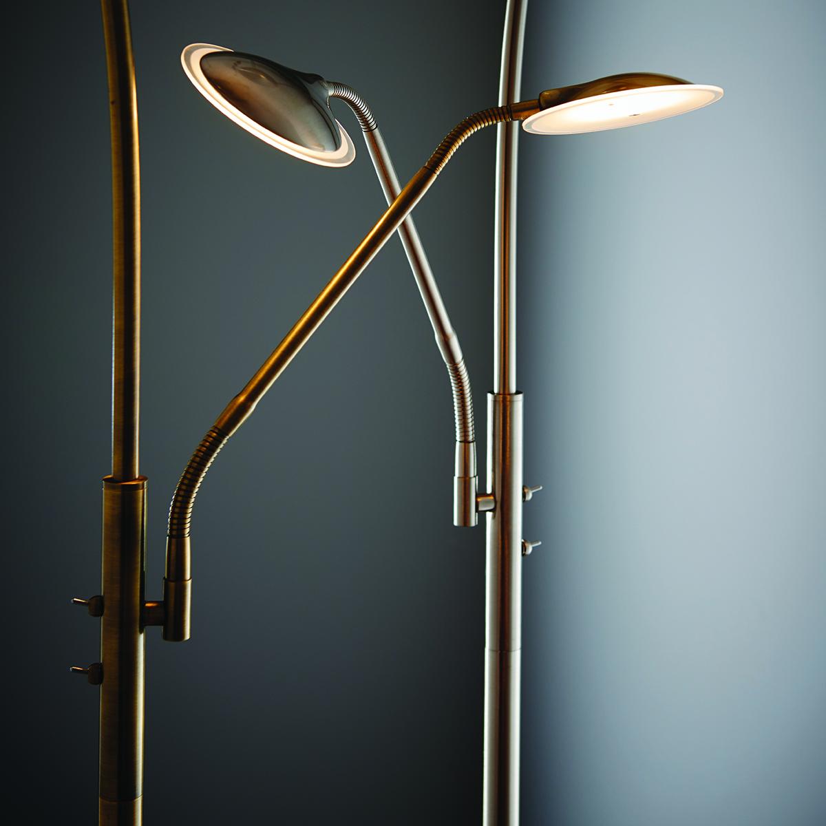 I love this floor lamp for its sleek, minimalist appeal and the warm antique brass finish which adds a touch of sophistication. It works particularly well in contemporary or mid-century inspired interiors, where its clean lines and subtle elegance can really shine. Practical styling tips include pairing it with a textured fabric shade to soften its look or positioning it next to a cosy reading nook or armchair to create a functional yet stylish corner. Its adjustable arm offers versatility for different lighting needs, making it a practical addition that elevates the overall aesthetic of the space.