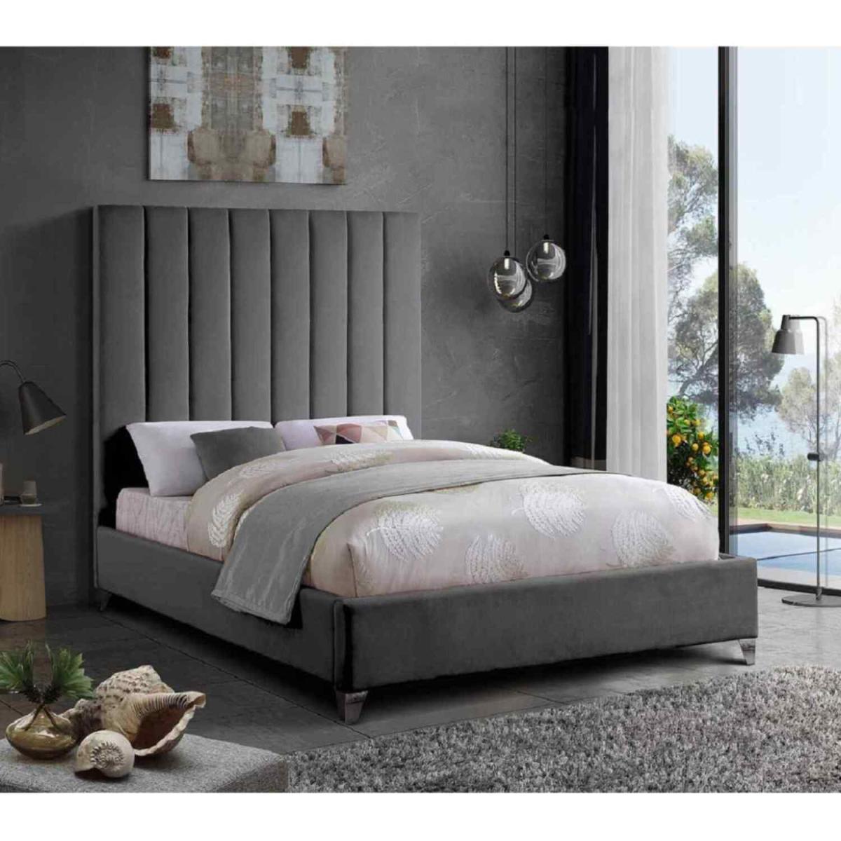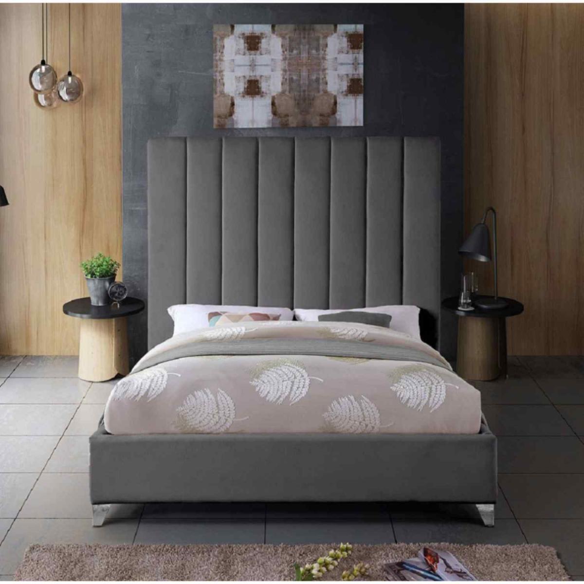 Alessandro Upholstered Plush Velvet Bed Frame - Grey / Single