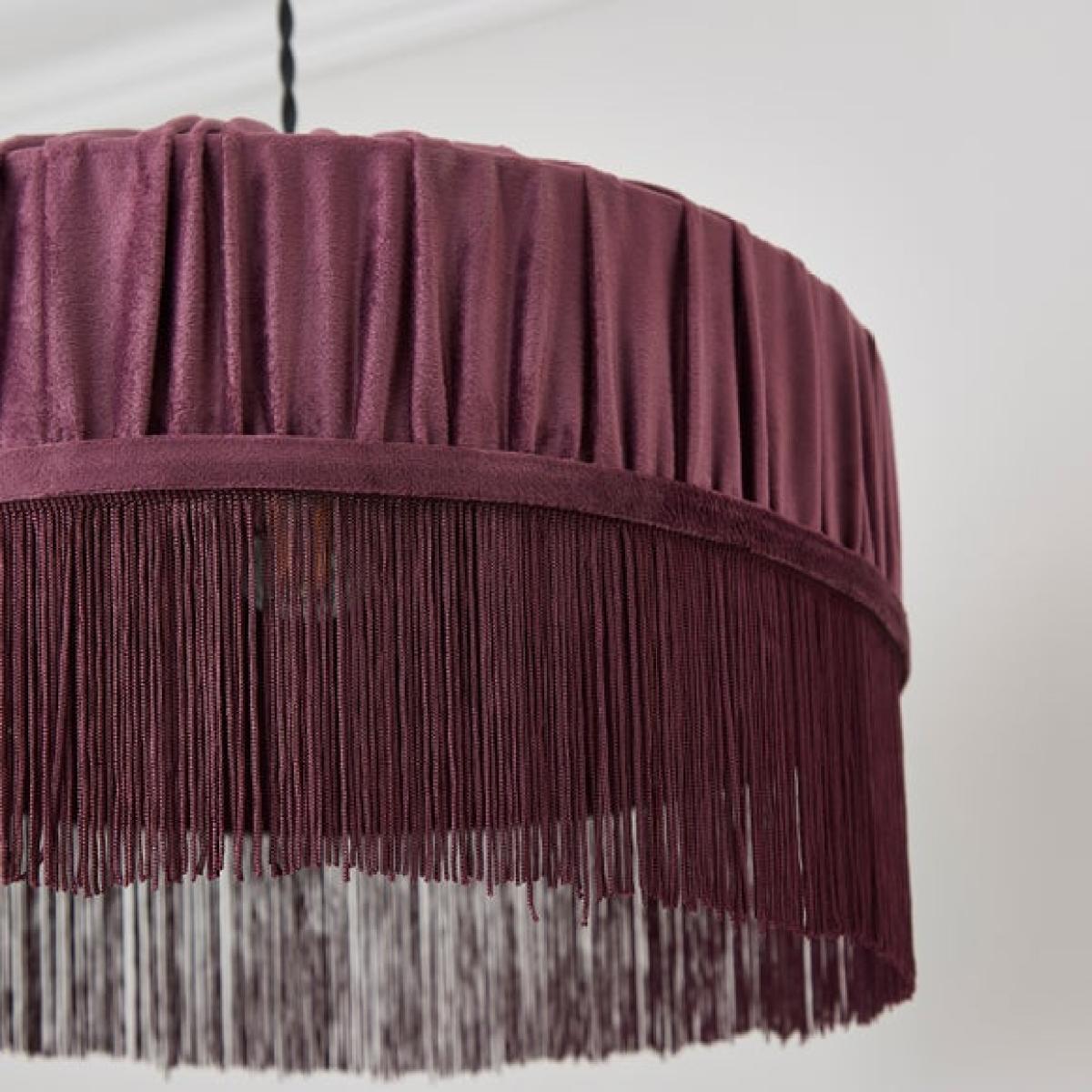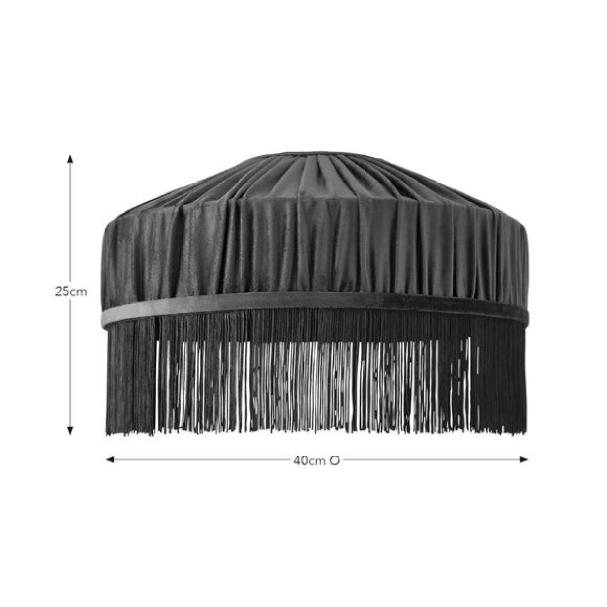 * Eye-Catching Look & Design * Matching Coloured Fringing * Made from Polyester * Reversible Gimbal - Works with Ceiling, Floor, & Table Lamps Meet the Alessia Velvet Pleated Lamp Shade, where rich pleats are framed with a matching coloured fringing. With a fabric pleated liner, this shade's reversible gimbal makes it suitable for ceiling, floor, and table lamps.