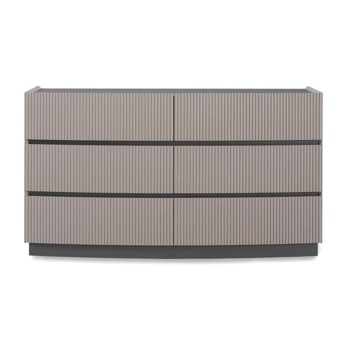 It’s easy to fall in love with our Alessio bedroom furniture collection. With its tonal two-colour palette in soft grey with graphite grey accents and modern matt-painted finish, it’s so on-trend. Plus, this range helpfully includes everything a modern bedroom needs – a bed frame and nightstands, chests of drawers large and small – and demonstrates thoughtful design choices everywhere you look. The striking bed frame has built-in LED headboard lighting, and storage pieces have soft-close drawers with neat finger pulls for a smooth and seamless look. Even better, the range’s chests of drawers arrive fully assembled so you can enjoy your stylish new bedroom right away. This large six-drawer chest of drawers brings spacious storage and on-trend style to your bedroom. You’ll love its matt-painted finish in two shades of grey. Why you'll love it On-trend bedroom furniture style with a fashionable two-tone look. Modern matt painted finish. Soft grey with contrasting graphite grey accents. Smooth and seamless look with integrated finger pulls. Soft-closing drawers. Delivered in one piece – no assembly required. This 6-drawer dresser is part of the Alessio bedroom furniture range. What you need to know 6 drawers. Arrives assembled. Please note that the matt finish may show surface scratches under certain lighting. While durable, this table’s finish is not heat resistant or heatproof. Do not use abrasive cleaning products. Use coasters and placemats at all times. WARNING!