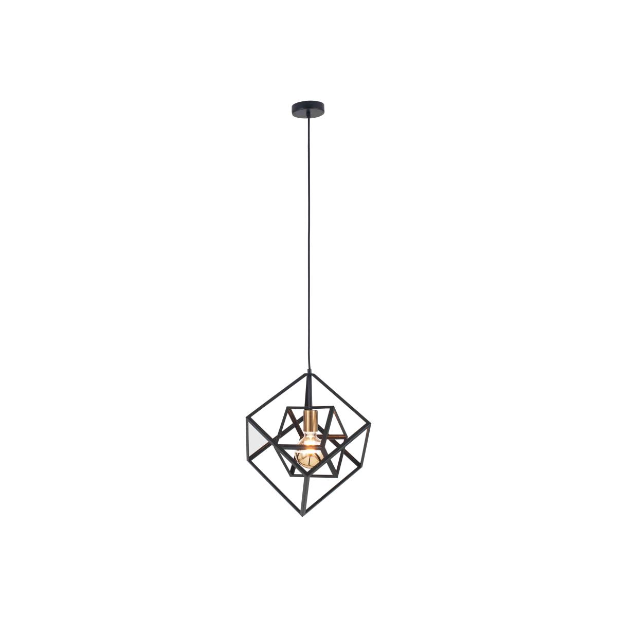 Our cube-within-a-cube pendant light is like a piece of modern three-dimensional art, bold and dramatic yet simple and pleasingly geometric. With a nickel or matt black finish. Why you'll love it Elegant linear pendant ceiling light is mathematical perfection. Modern industrial style. Open cube design gives the impression of a light suspended in mid-air. Choose shiny nickel or matt black finish. Affixed to a circular ceiling plate. This pendant light is a Furniture Village online exclusive. What you need to know Made of metal. Requires 1 x LED E27 10-12W bulb, not included. Supplied with 112 cm of cable. Dimmer switch compatible. Dimensions Height: 44 cm (18 in). Diameter: 44 cm (18 in).