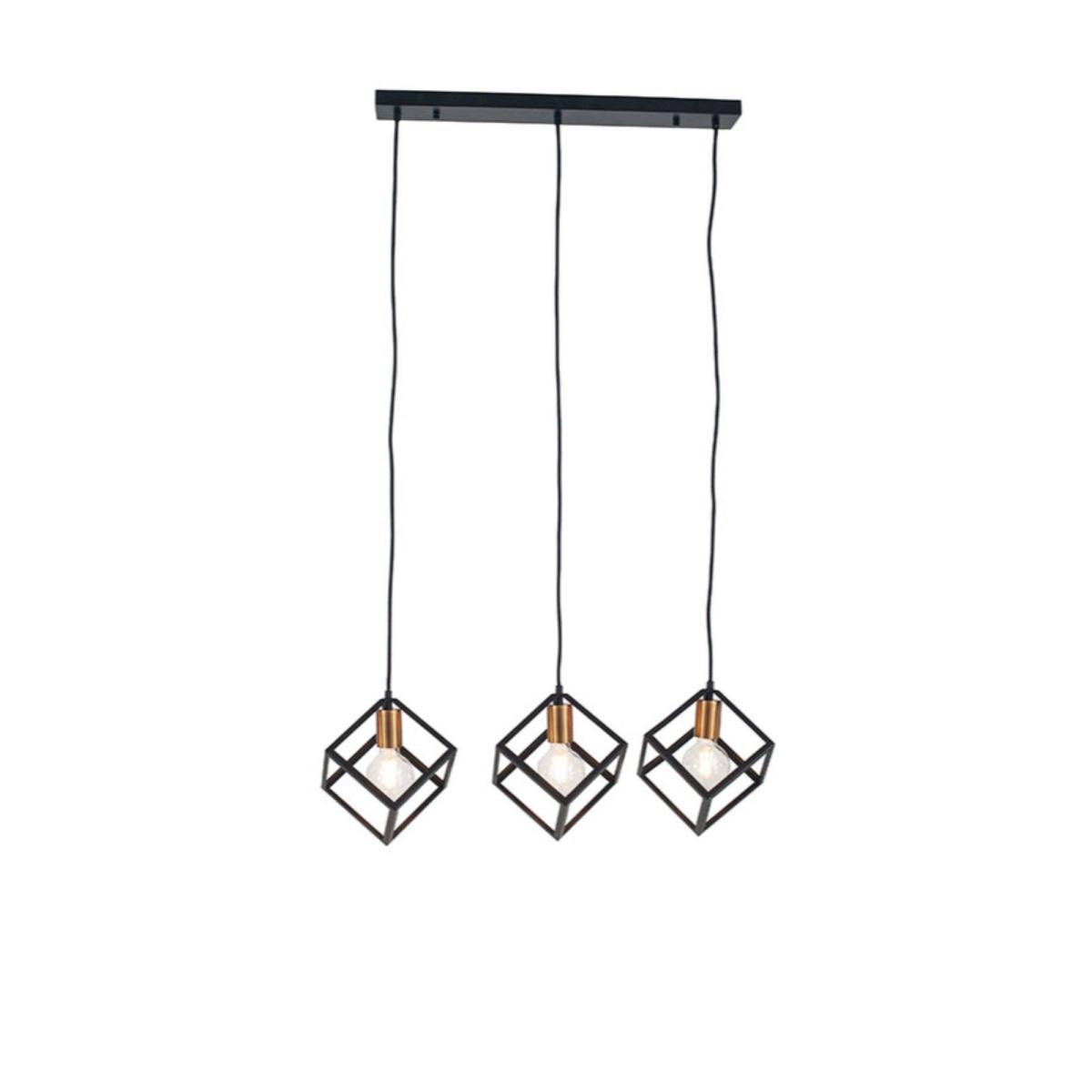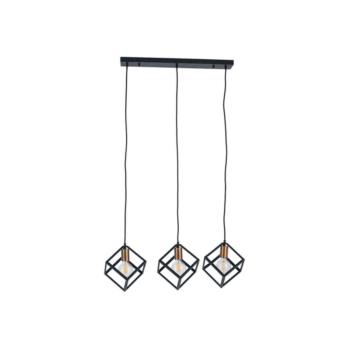 Alessio Cube 3 Light Black and Gold Pendant Ceiling Light