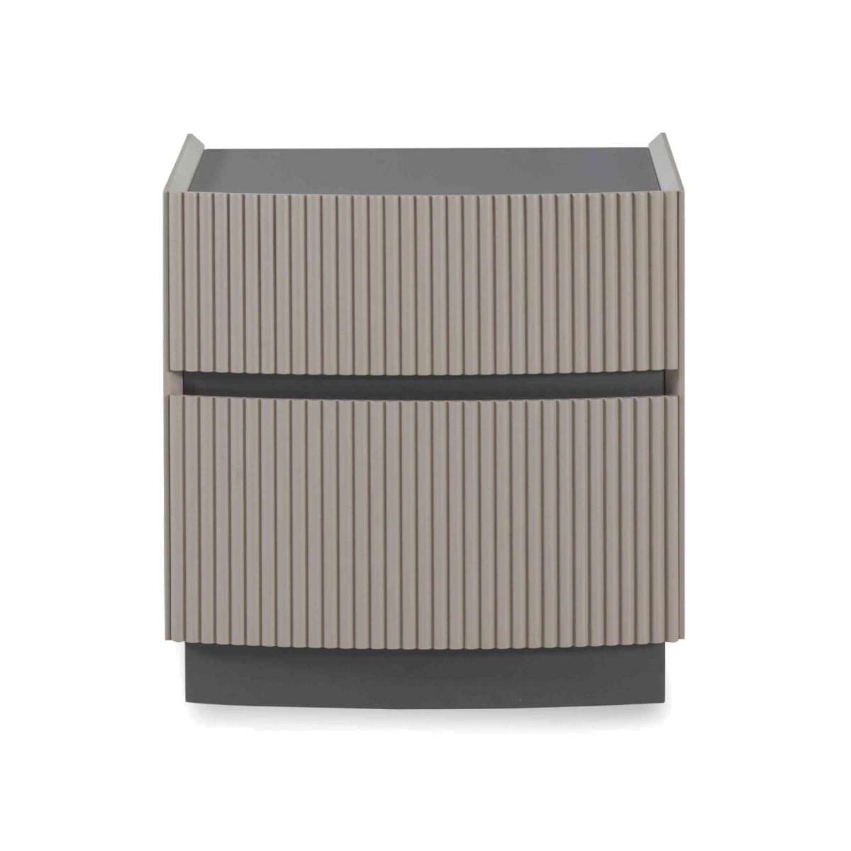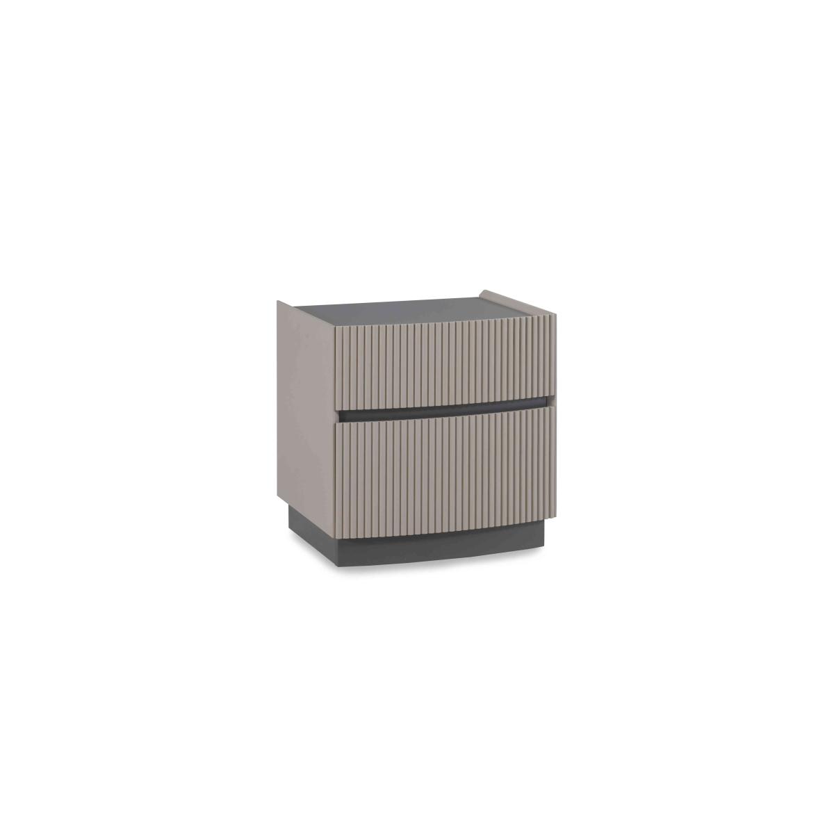 It’s easy to fall in love with our Alessio bedroom furniture collection. With its tonal two-colour palette in soft grey with graphite grey accents and modern matt-painted finish, it’s so on-trend. Plus, this range helpfully includes everything a modern bedroom needs – a bed frame and nightstands, chests of drawers large and small – and demonstrates thoughtful design choices everywhere you look. The striking bed frame has built-in LED headboard lighting, and storage pieces have soft-close drawers with neat finger pulls for a smooth and seamless look. Even better, the range’s chests of drawers arrive fully assembled so you can enjoy your stylish new bedroom right away. This neat and stylish nightstand has a fashionable matt-painted finish in light grey with graphite grey accents and a seamless handleless design. Why you'll love it On-trend bedroom furniture style with a fashionable two-tone look. Modern matt painted finish. Soft grey with contrasting graphite grey accents. Smooth and seamless look with integrated finger pulls. Soft-closing drawers. Delivered in one piece – no assembly required. This nightstand is part of the Alessio bedroom furniture range. What you need to know 2 drawers. Arrives assembled. Please note that the matt finish may show surface scratches under certain lighting. While durable, this table’s finish is not heat resistant or heatproof. Do not use abrasive cleaning products. Use coasters and placemats at all times.