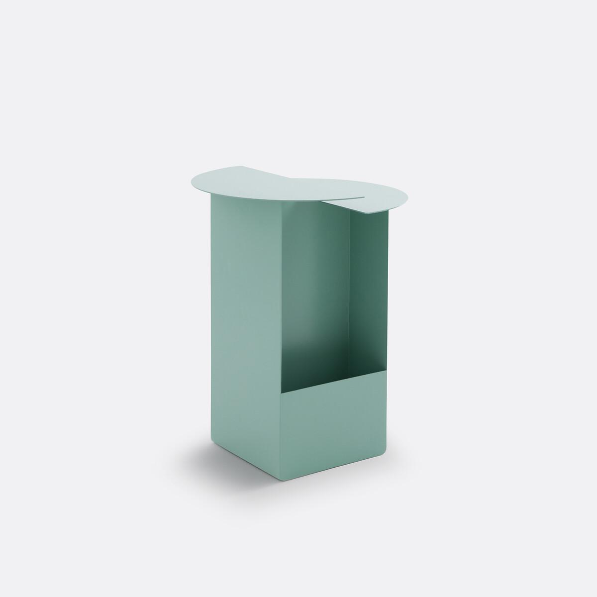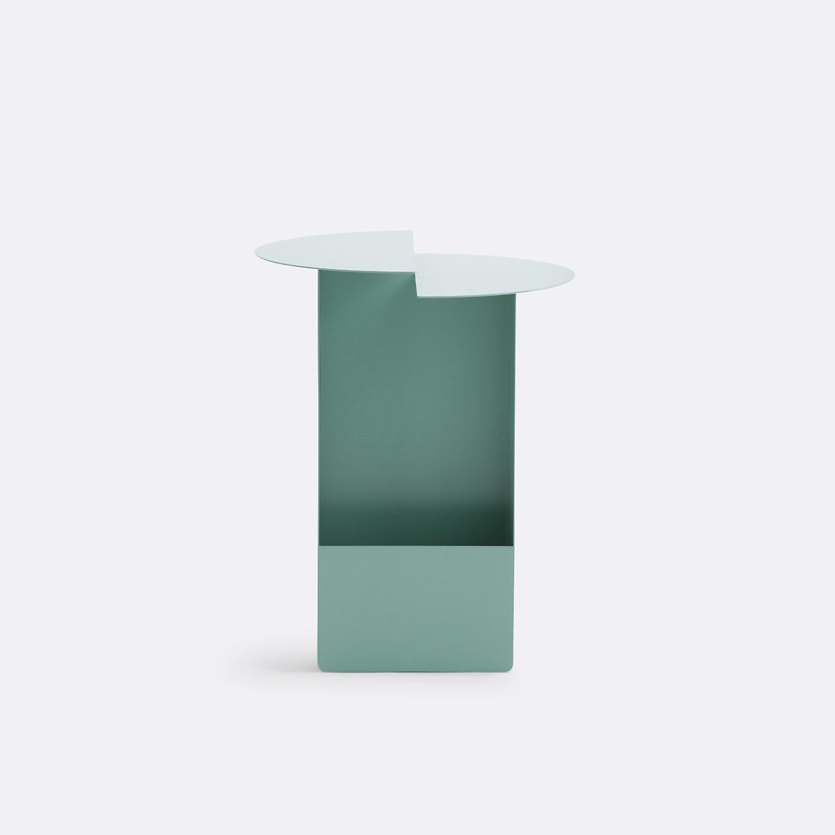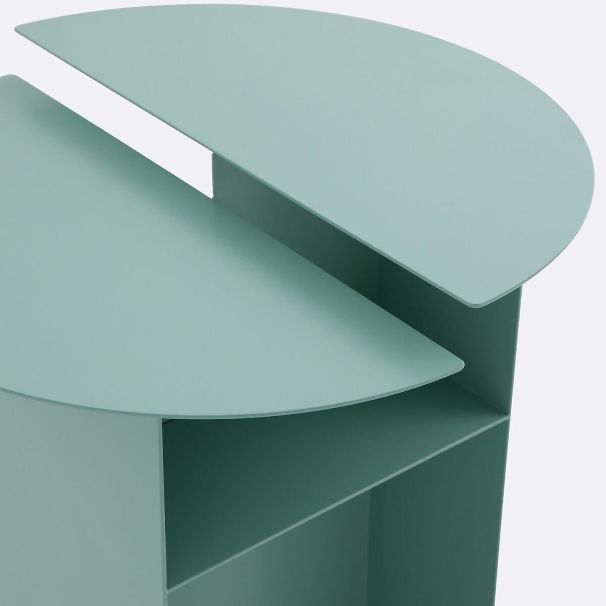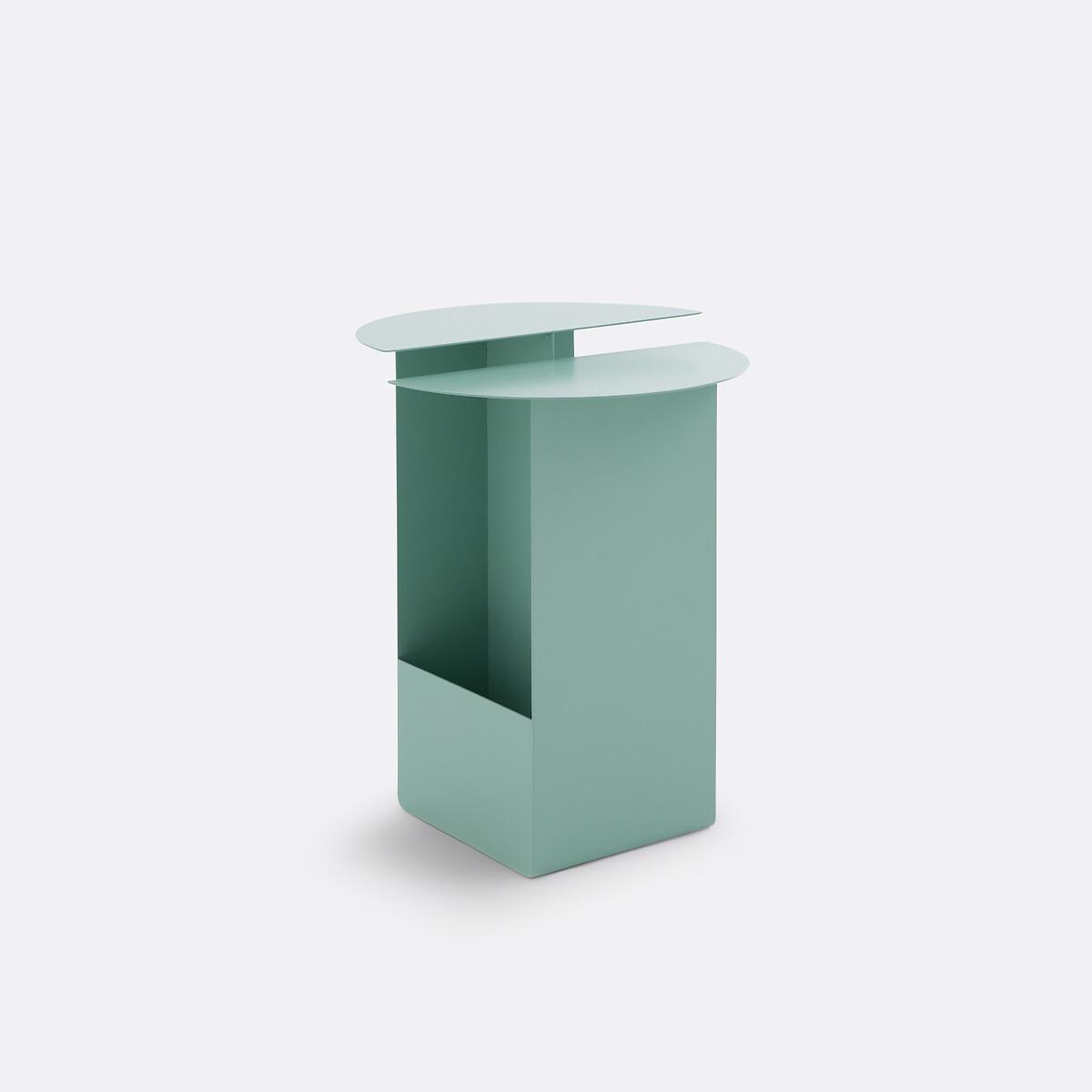 An industrial style and contemporary design. Alessio offers a double semi-circle top and can be used on both sides. Functional and inventive furniture. Product Details • Made from steel with an epoxy finish • Semicircular double tabletop • Reversible: 1 side with a shelf, 1 side with a storage niche • Felt pads on feet • Delivered pre-assembled. Dimensions • Length: 38cm • Depth: 38cm • Height: 48.2cm • Weight: 8.2kgDelivery:.. Note! Please check that all access points are large enough to accommodate your delivery (doors, stairs, lifts).Dimensions and weight of parcel1 parcel • L46 x H57 x D46cm. 10kg