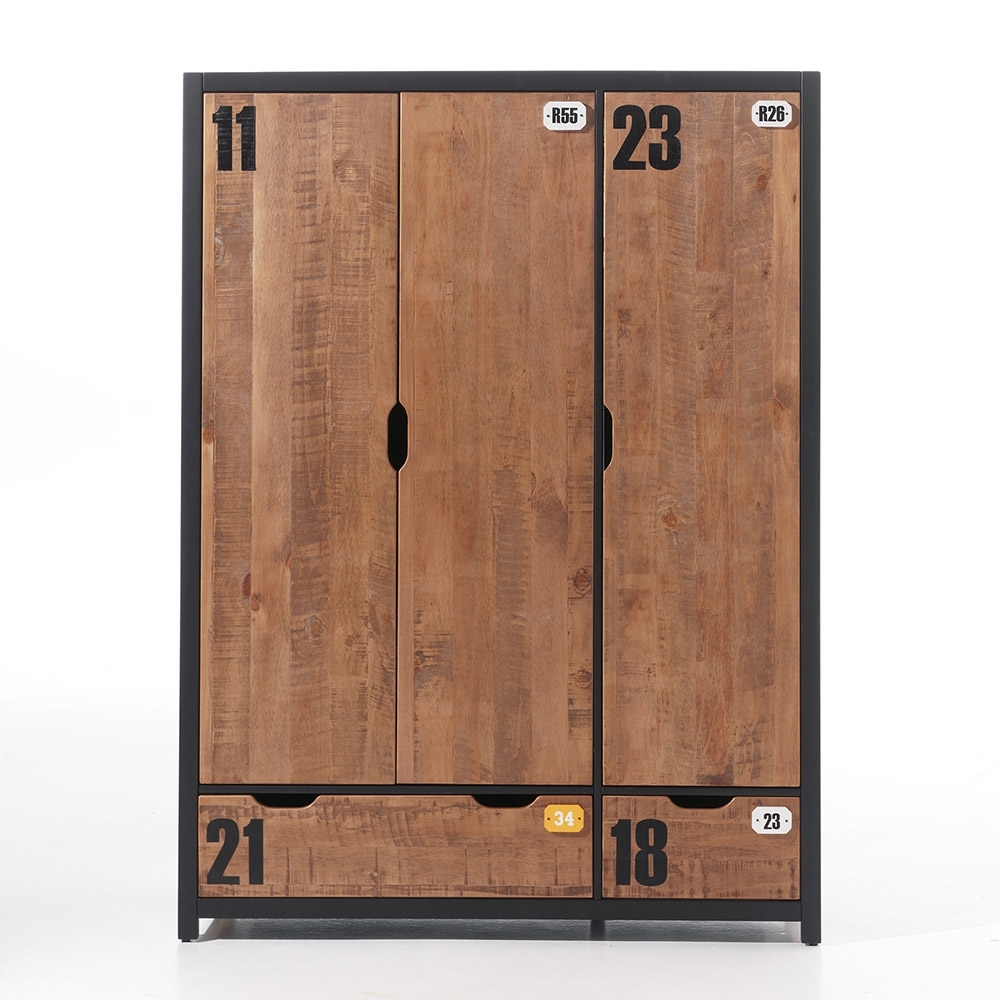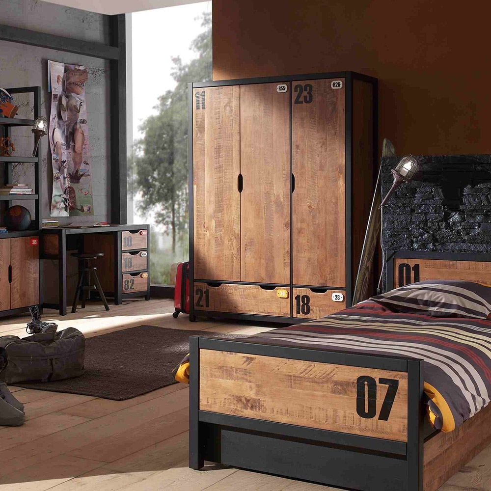 Your youngster will have no excuse for not putting away their clean washing or for leaving clothes on the floor with the Alex 3 Door Wardrobe. With a large hanging rail and shelf inside the double doors and additional shelving behind the third door, there will be loads of space for all of their clobber. If that wasn't enough storage, there's also two handy pull out drawers to the bottom of the wardrobe. With its industrial design and sleek black frame, not to mention solid pine construction this piece of furniture will look great in a variety of bedroom themes and see your little one through their teenage years too!.