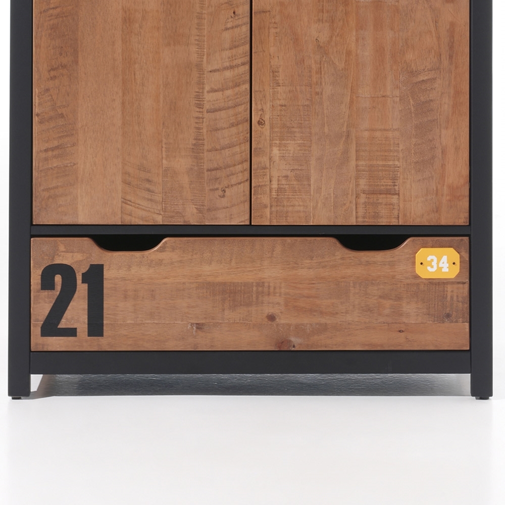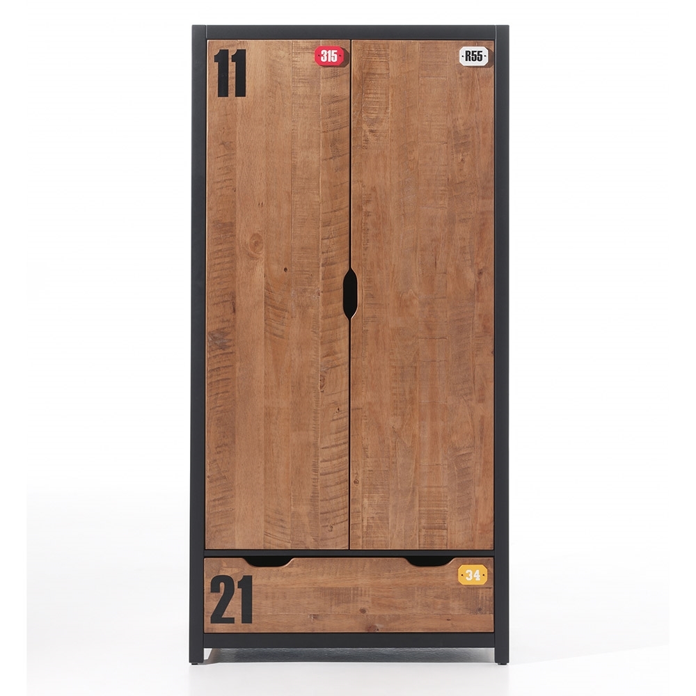 Your youngster will have no excuse for not putting away their washing or for leaving clothes on the floor with the Alex 2 Door Wardrobe. With a hanging rail and large shelf, there will be plenty of space for all of those outfits. If that wasn't enough storage, there's also a handy pull out drawer to the bottom of the wardrobe. With its industrial design and sleek black frame, this piece of furniture will look great in a variety of bedroom themes and see your little one through their teenage years too!.
