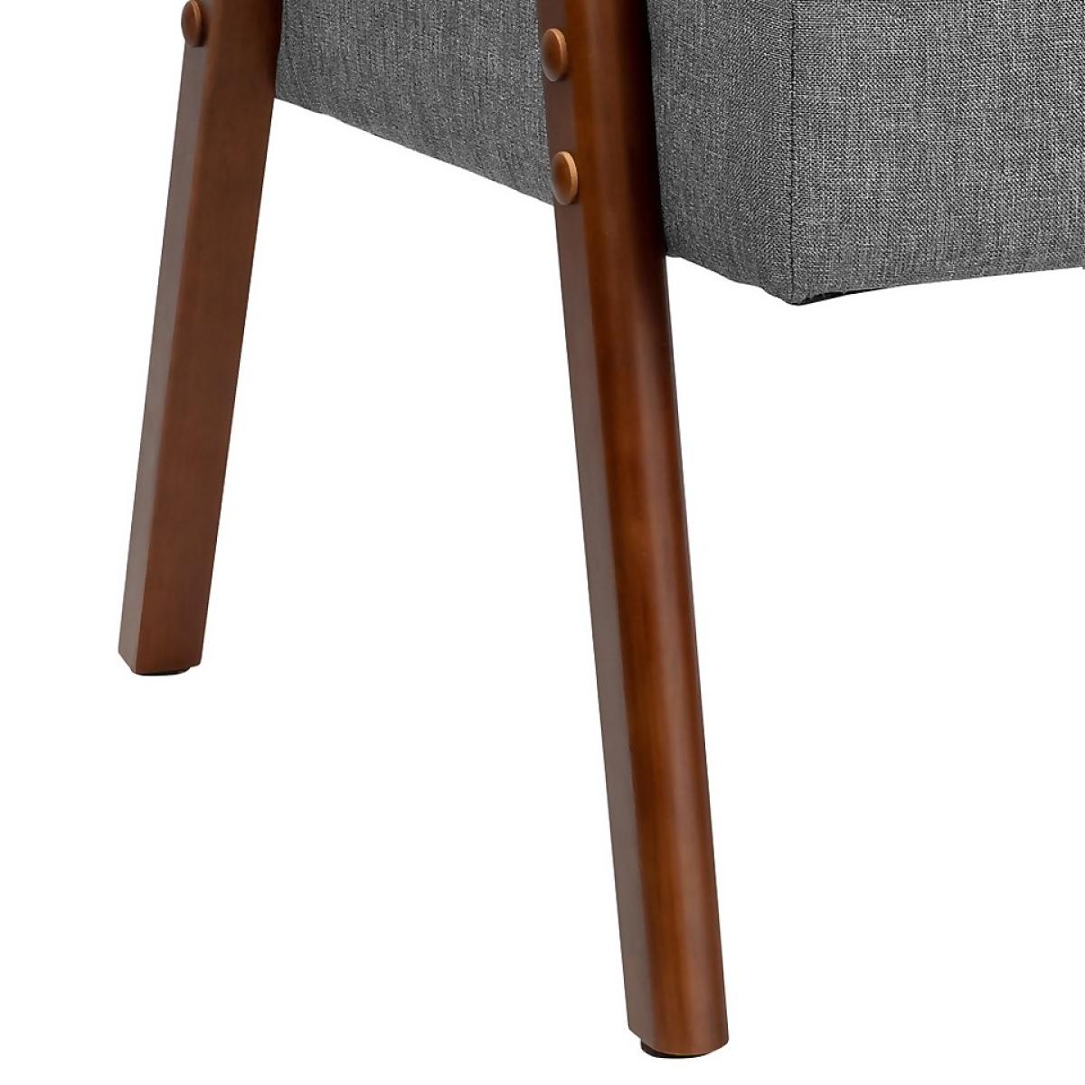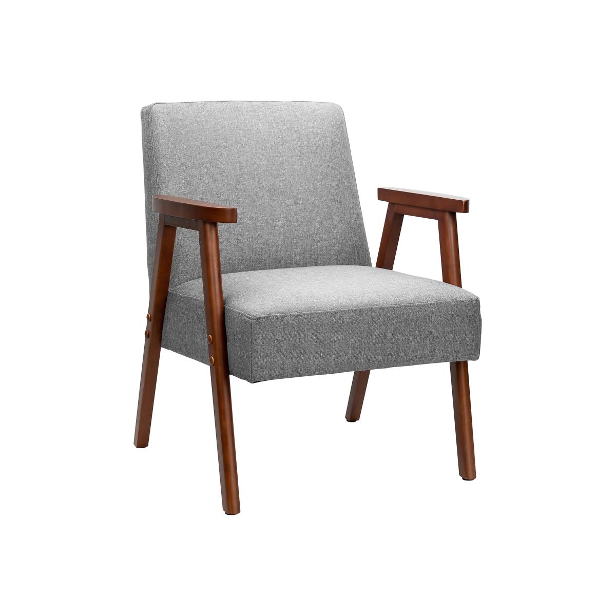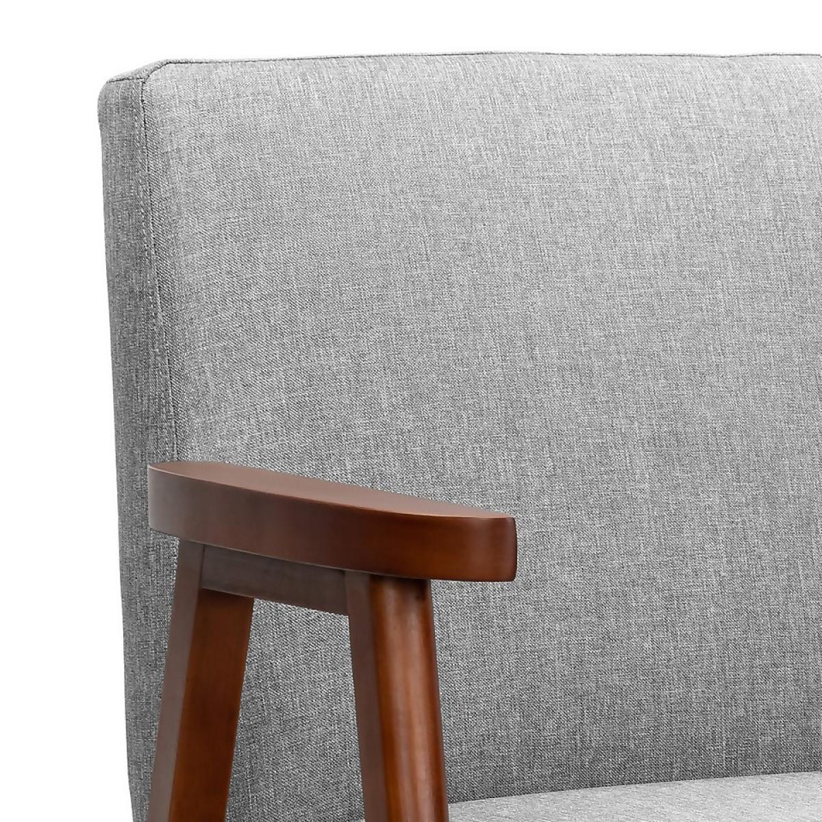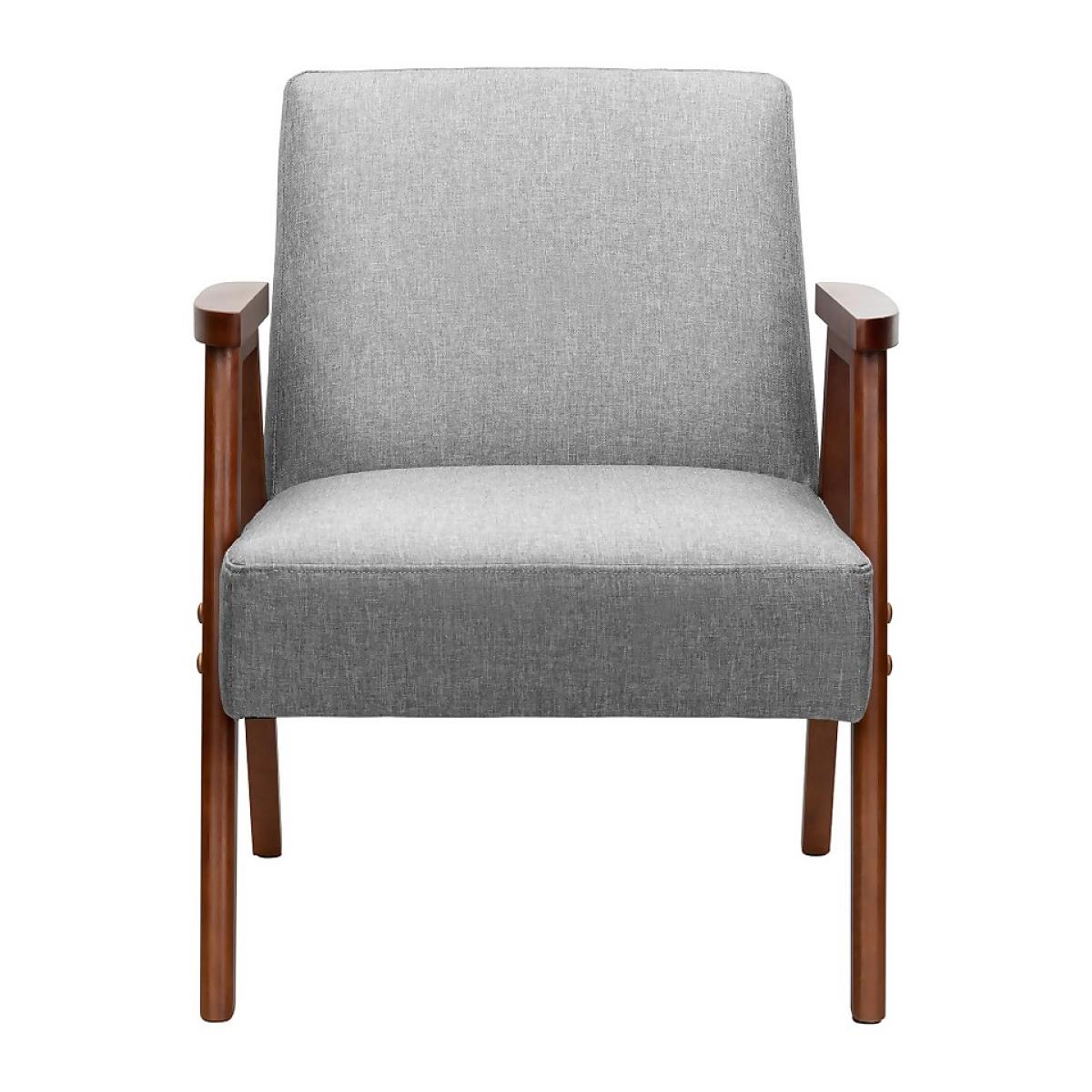 I love this armchair for its simple, clean lines and neutral grey tone, making it incredibly versatile. It works well in both modern and mid-century interiors, adding a touch of understated sophistication without overpowering the space. To style it effectively, consider pairing it with textured cushions or throws in contrasting colours to add visual interest. It’s a practical piece for living rooms, bedrooms, or even a study, where it can serve as a comfortable accent without dominating the room. The wooden arms and legs give it a warmth that complements natural materials like wood or rattan, making it easy to integrate into various colour schemes and interior styles.
