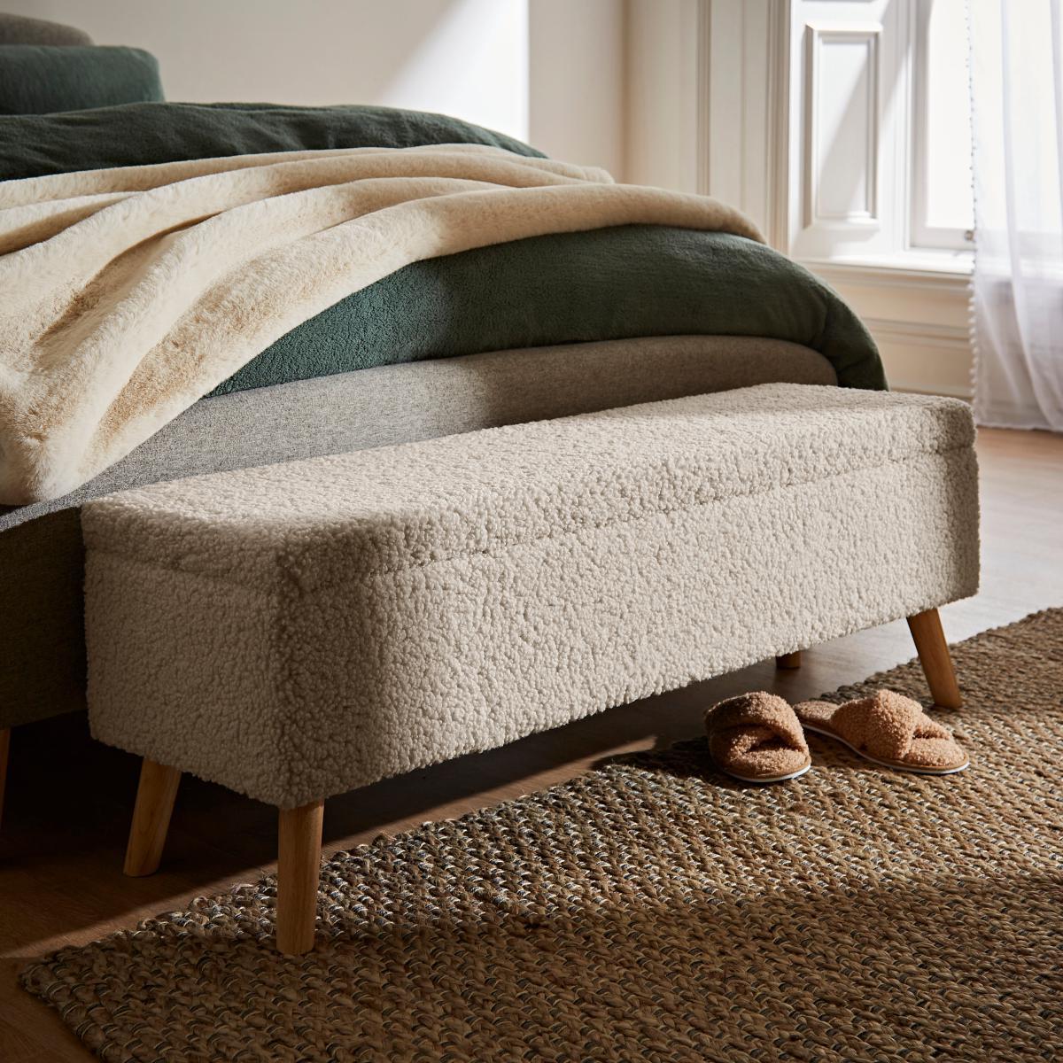 Alex Moonbeam Eco Boucle Ottoman Bench White Sand