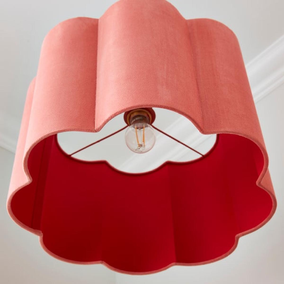 * Unique Flower-Shaped Shade * Made from Velvet * Contrasting Inner - Eye-Catching * Easy Fit - Quick & Simple Installation Add style to your home with the Alex Velvet Easy Fit Drum Lamp Shade. In a unique and eye-catching flower shape, it boasts a contrasting inner and an easy fit composition - making installation a breeze.